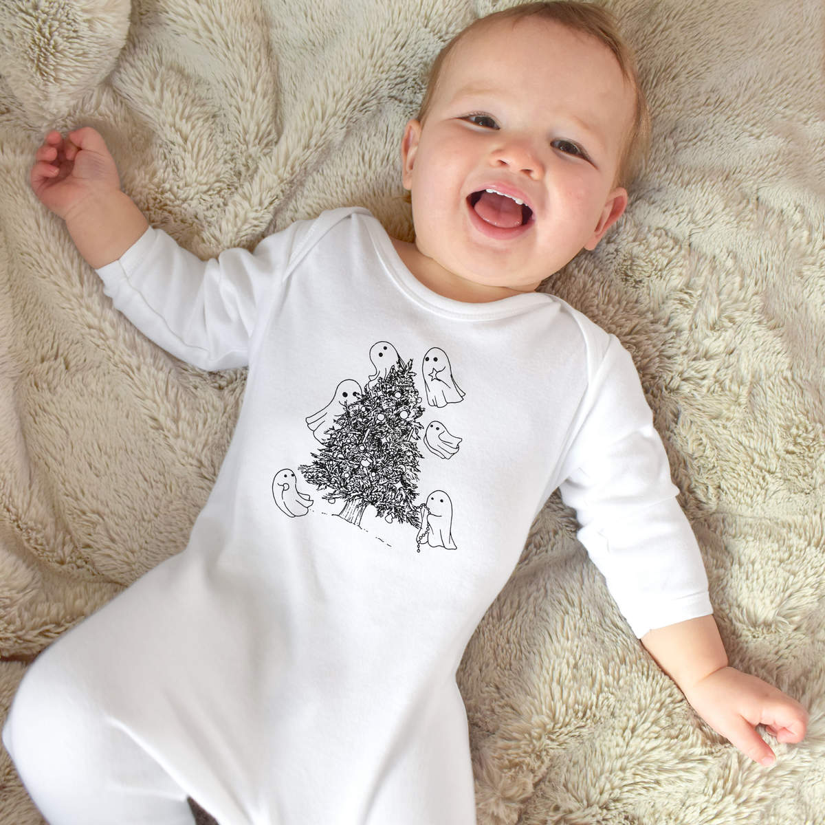 Little ones can sleep peacefully in this super soft romper sleepsuit. Our unisex jumpsuits are made from 100% cotton and are printed on the front with a unique design. Practical functions include popper fastenings for ease of changing and built-in feet.