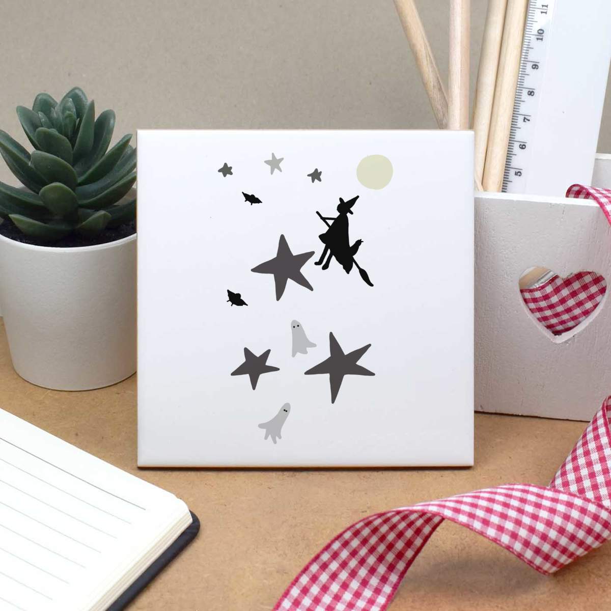 'Ghosts and witch' 108mm Square Ceramic Tile (TD00022290)