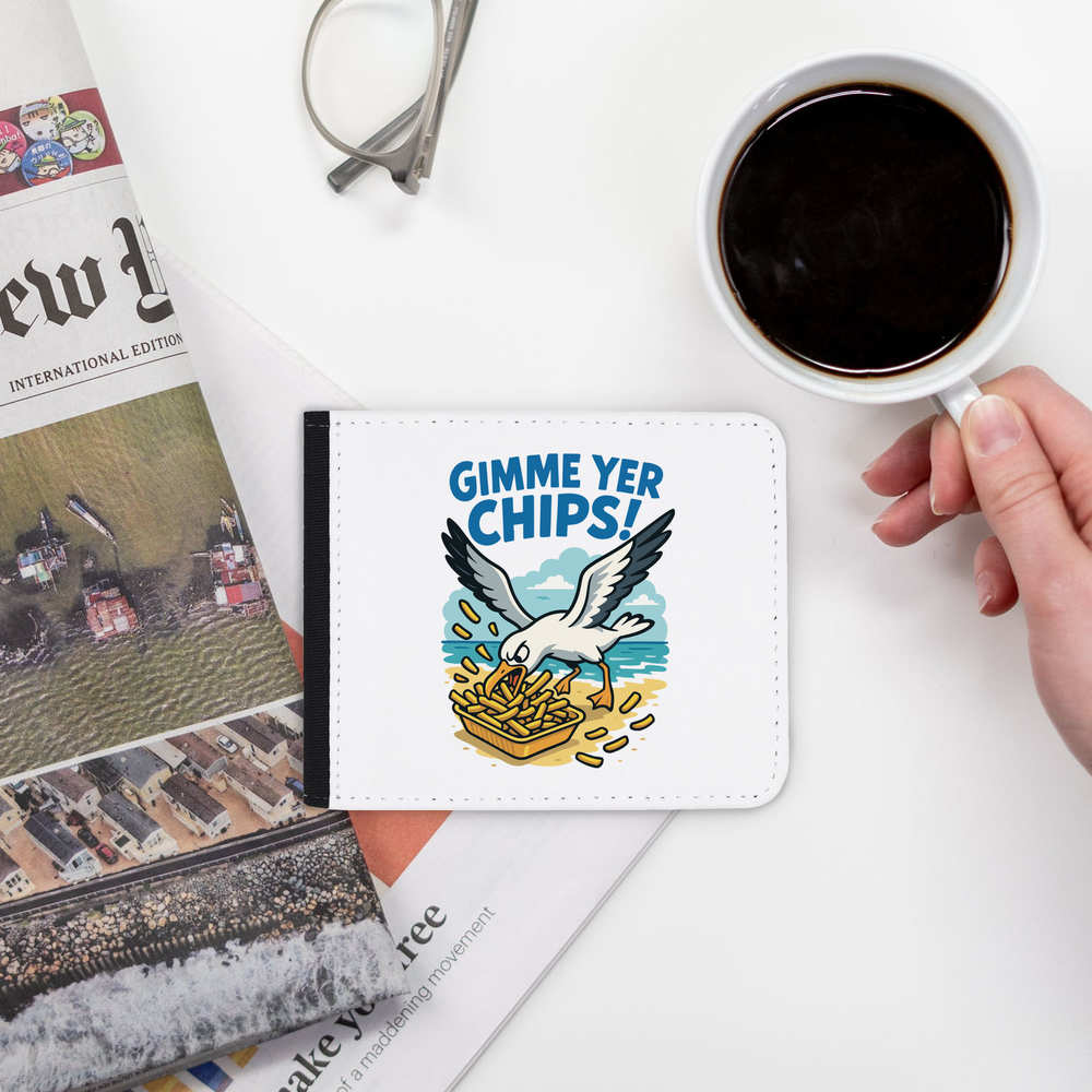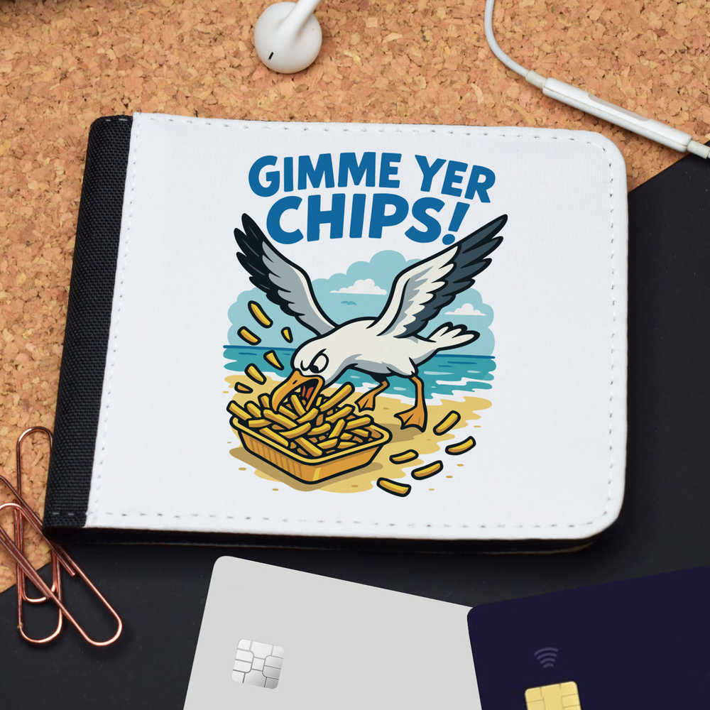'A cheeky seagull swooping in to snatch some chips, a familiar sight by the British seaside'
