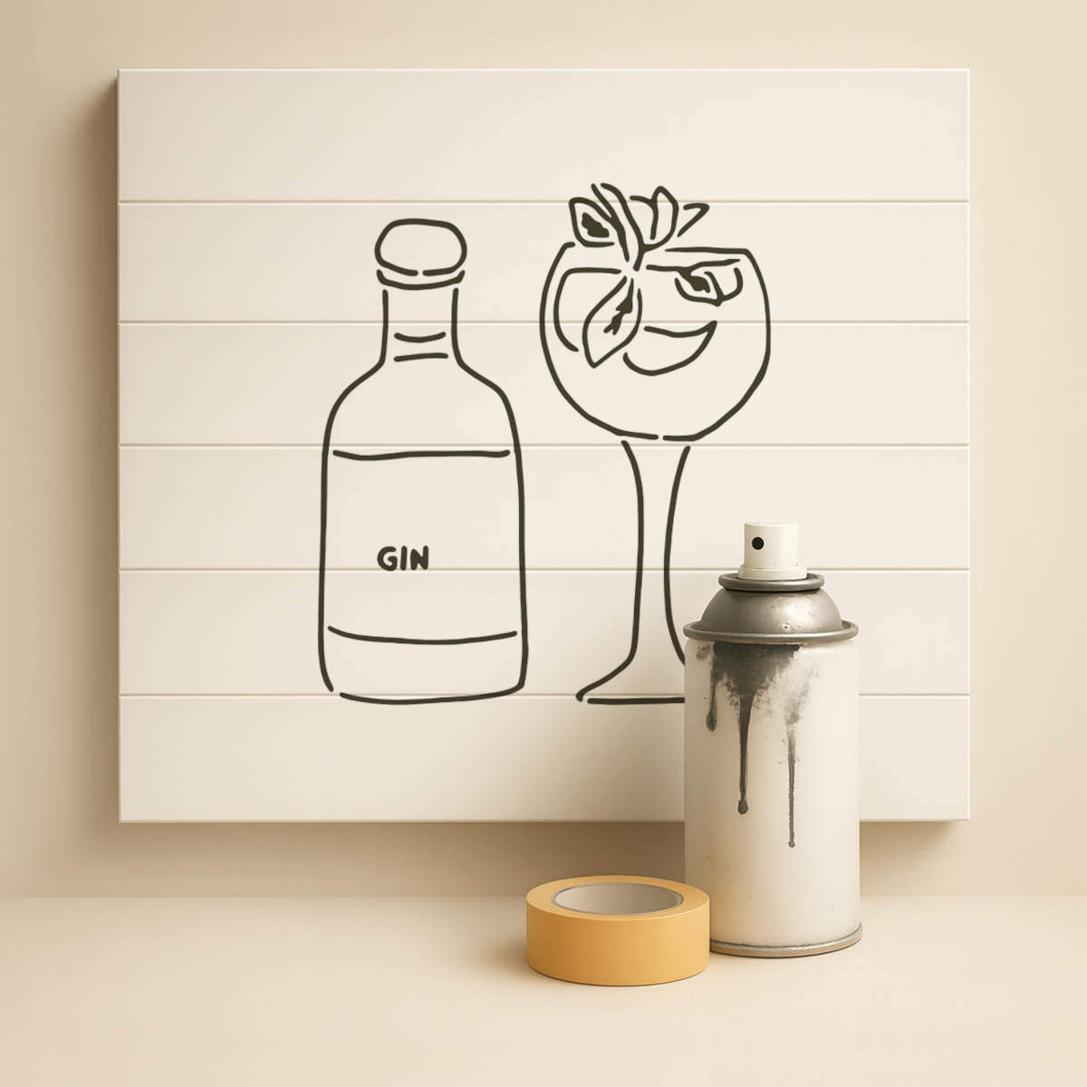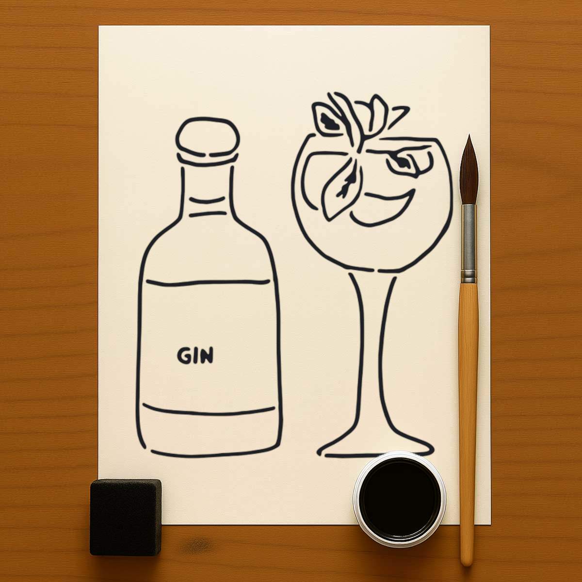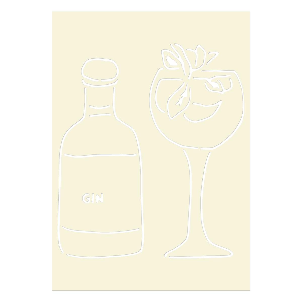 'Gin With Glass' Reusable Stencil – Durable Decorative Template for Painting and Spraying on Walls, Tiles, Wood, Fabric & Craft Projects - M (A5) (WS00037088)