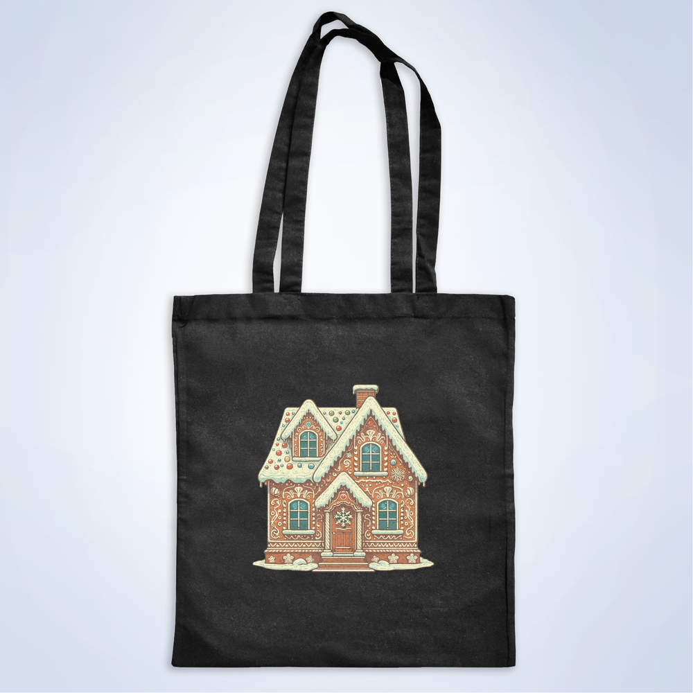 'Gingerbread House' Classic Black Tote Shopper Bag (ZB00023258)