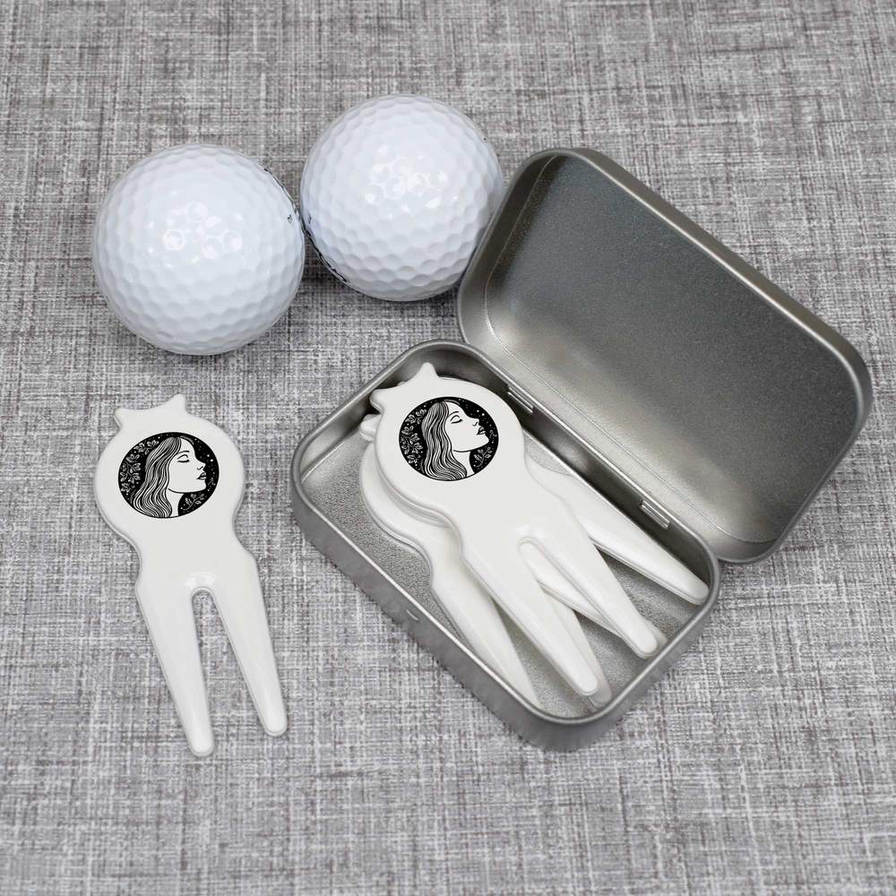 A fantastic gift for any golfer! This set includes 4 plastic divot tools / pitch forks, each printed on one side with a unique design. All 4 forks come in a small tin with a matching design printed on the lid.