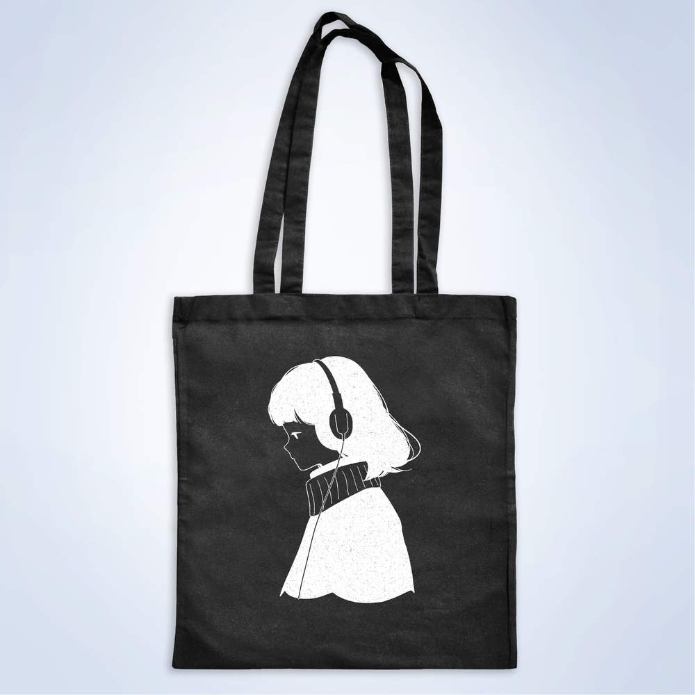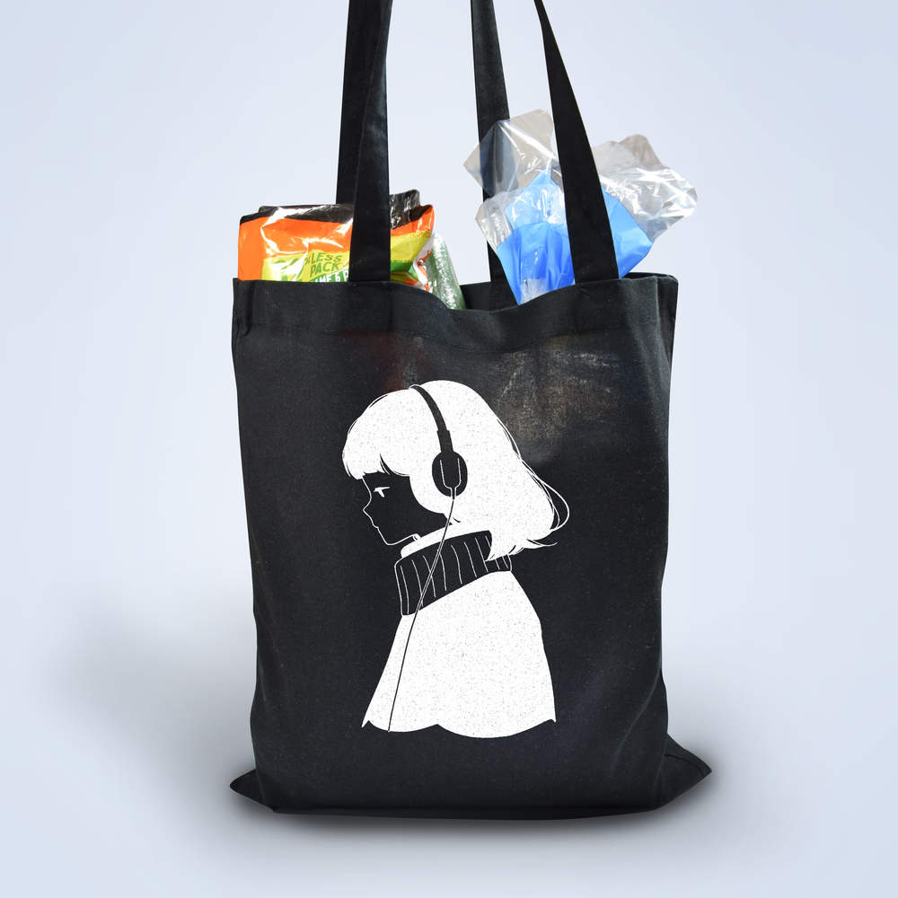 'Girl with Headphones' Classic Black Tote Shopper Bag (ZB00022218)