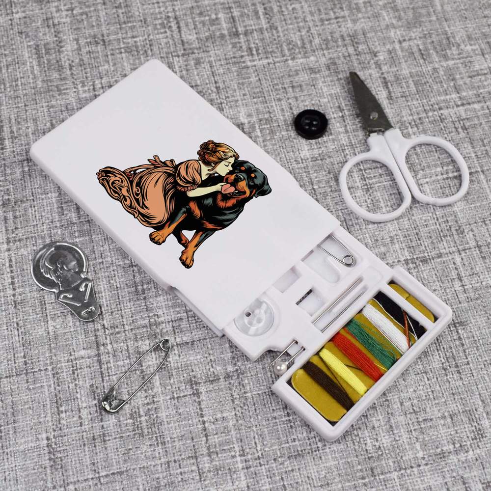 'Girl With Rottweiler Puppy' Mini Travel Sewing Kit (SE00035952)