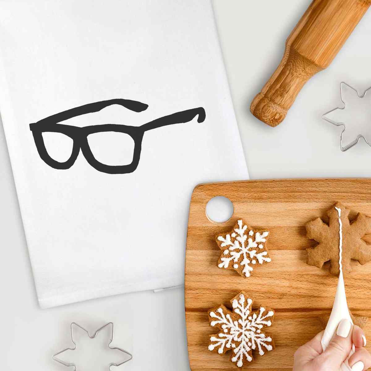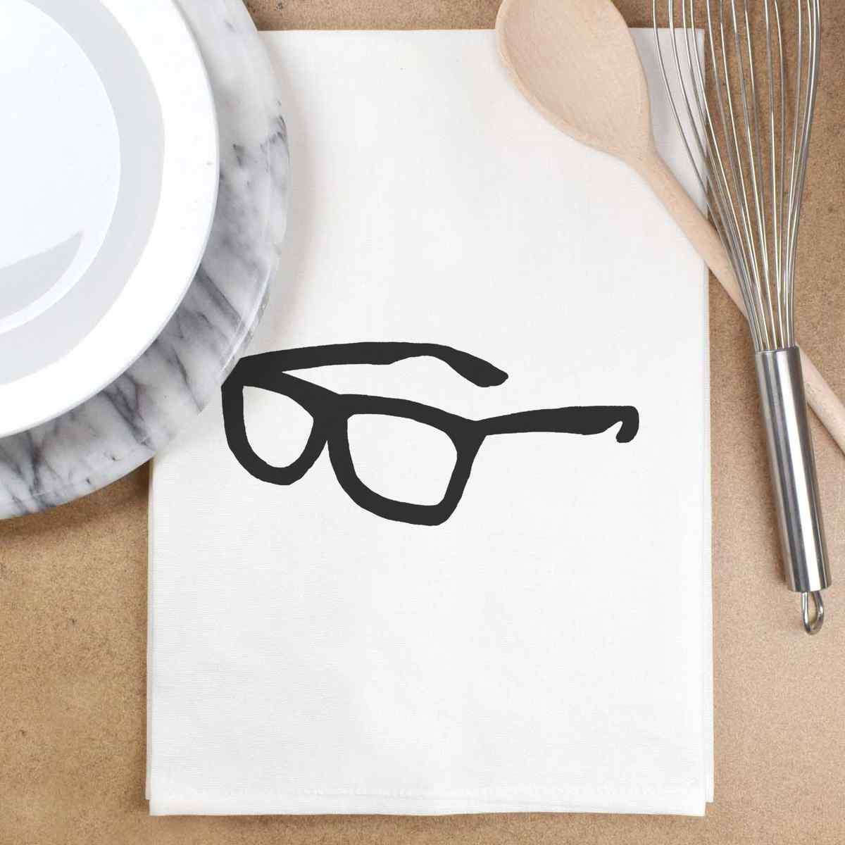 'Glasses' White Cotton Tea Towel / Dish Cloth (TW00001722)