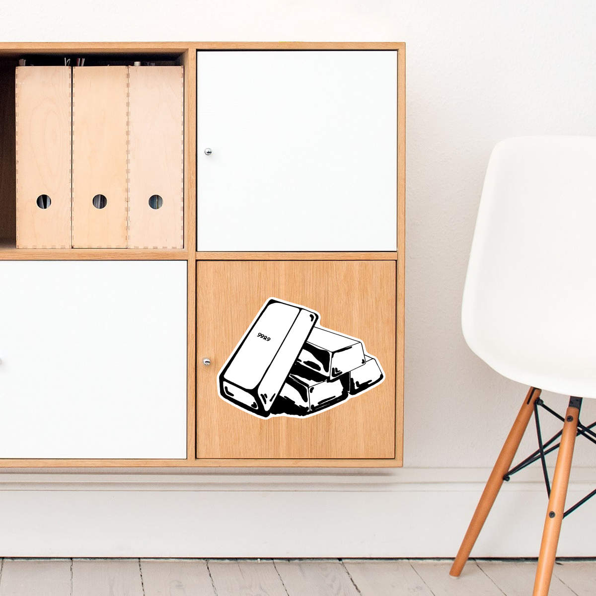 'Gold Bars' White Premium Vinyl Decal Sticker – Waterproof, Durable & Easy to Apply - For Car Bumpers, Windows, Bins & More - Large (210mm) (DW00055299)