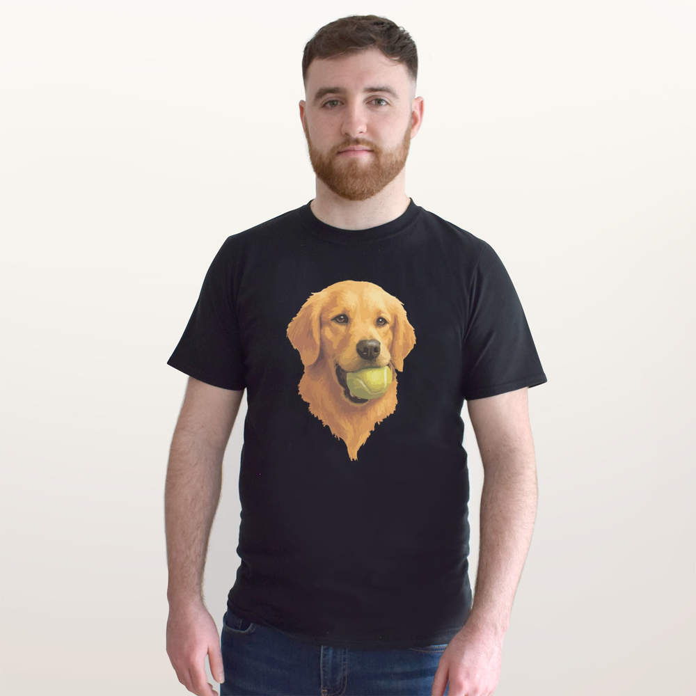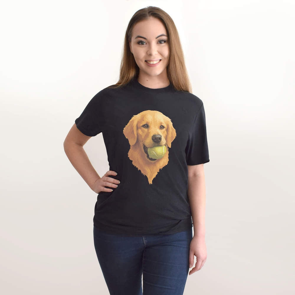 'Golden Retriever Dog With A Tennis Ball' Unisex T-Shirt - 100 % Cotton, Black, M (TA00392425)
