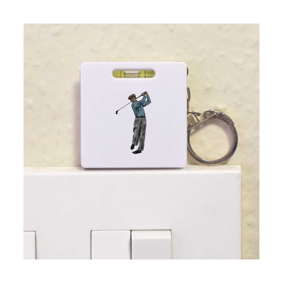 This multifunctional tool offers both a tape measure and spirit level in one handy little accessory. The retractable, 1 metre tape measure has both imperial and metric units, while the flat edges around its plastic casing provide the ability to check both vertical and horizontal surfaces with a mini spirit level. The compact and lightweight design makes it easy to carry around; simply attach with the keychain provided and whip it out when needed. Each keyring tape measure tool is printed on one side with a unique design.