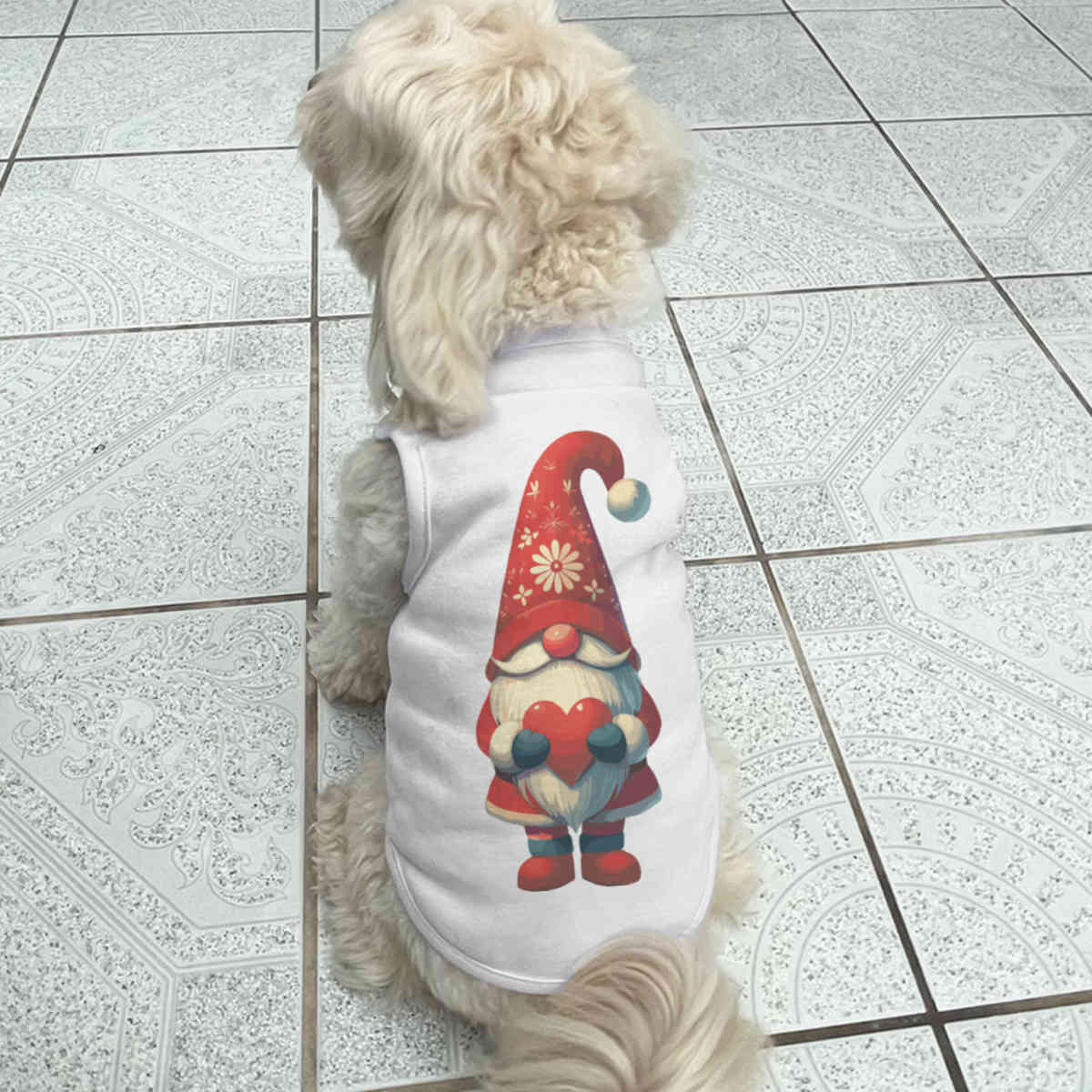 Give your furry friend a fresh new look with this adorable white dog T-shirt, designed to turn heads with its unique print on the back! Made from 100% polyester, it offers a comfortable yet firm stretch, perfect for both playtime adventures and cozy cuddles. Whether your dog loves to play outdoors or cuddle indoors, this T-shirt provides all-day comfort and style.