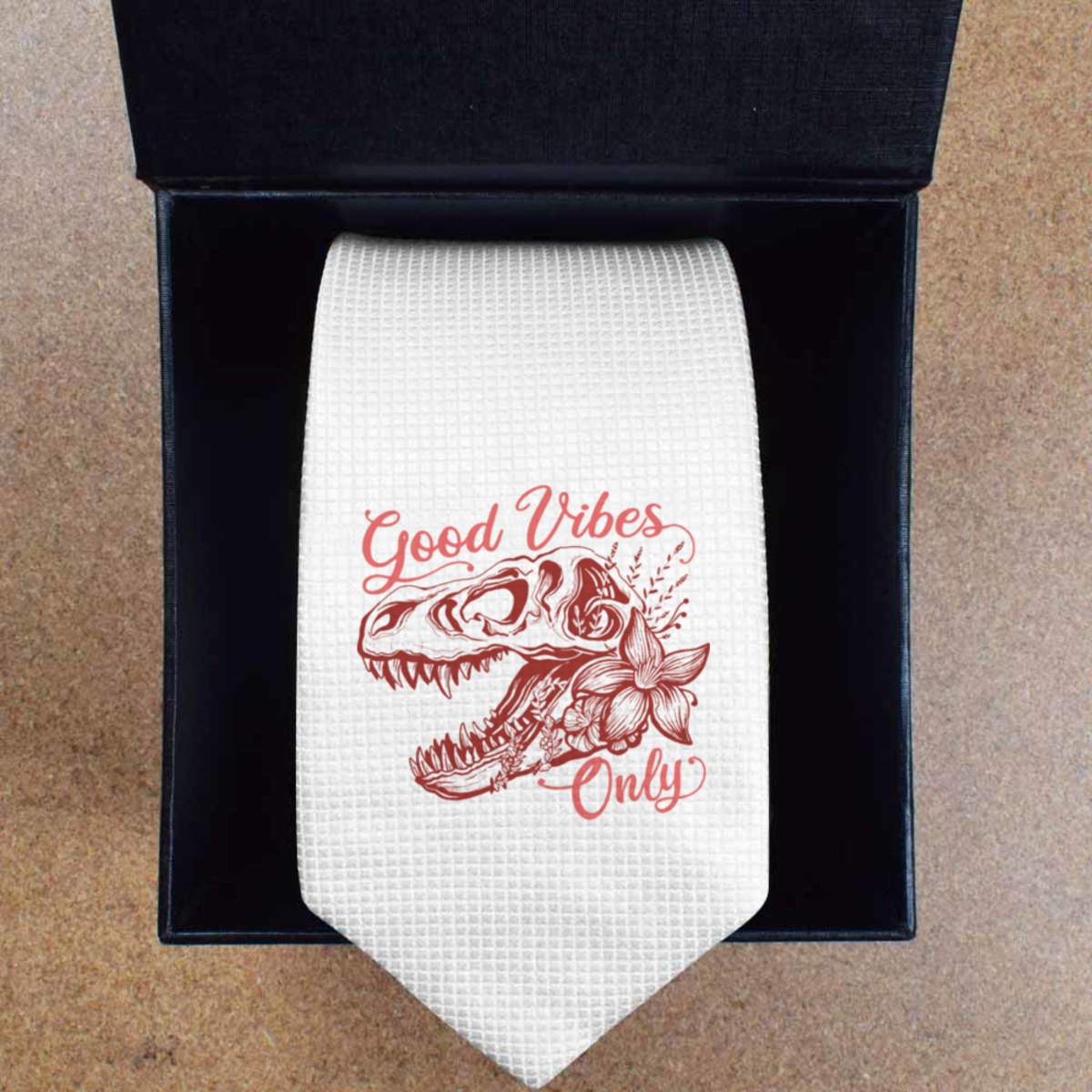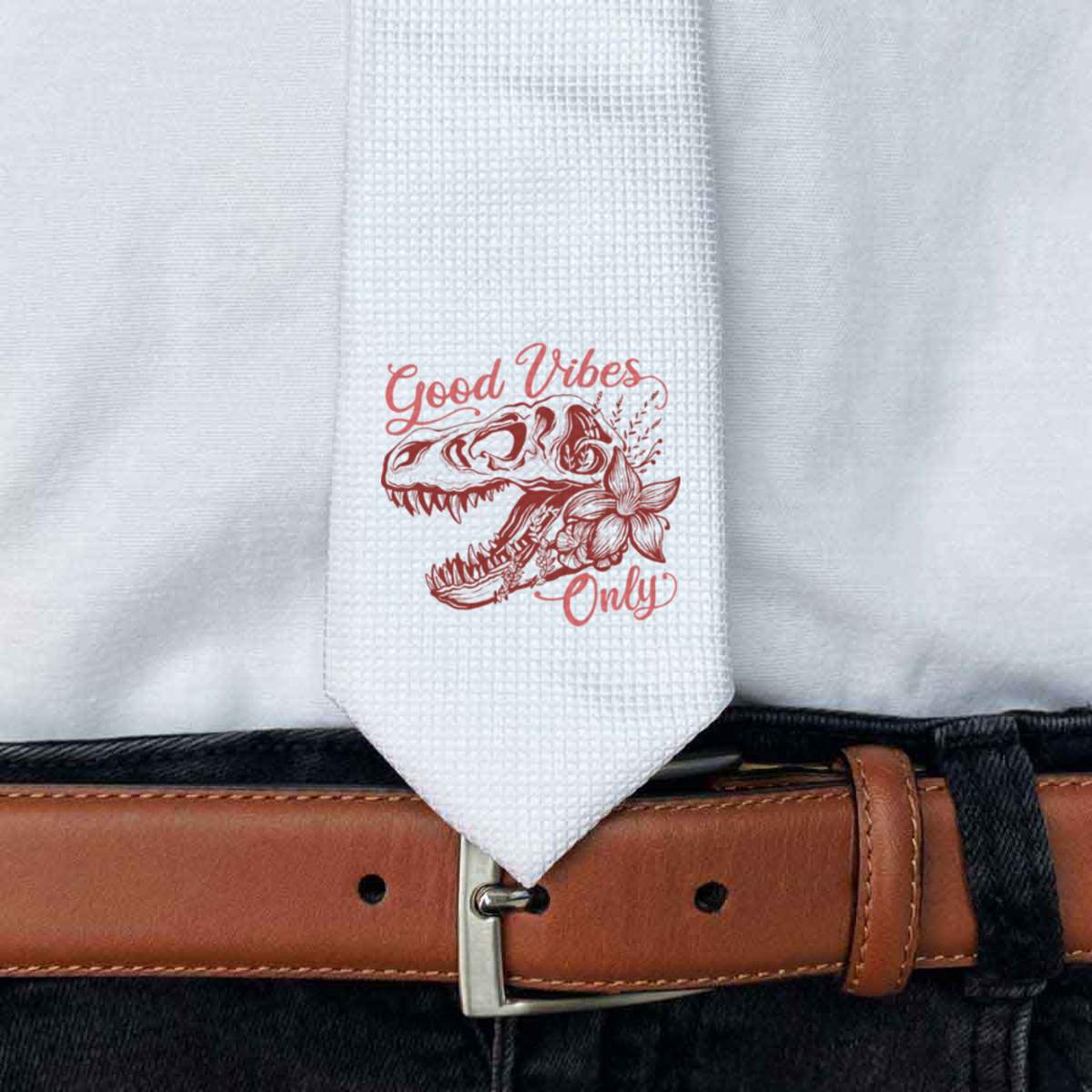 This stylish slim white tie is guaranteed to add class to any outfit. Printed on the front with a design from one of our talented designers, these ties are perfect for formal events, special occasions or making a statement at the office.