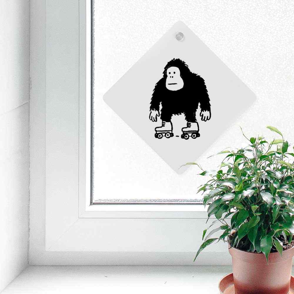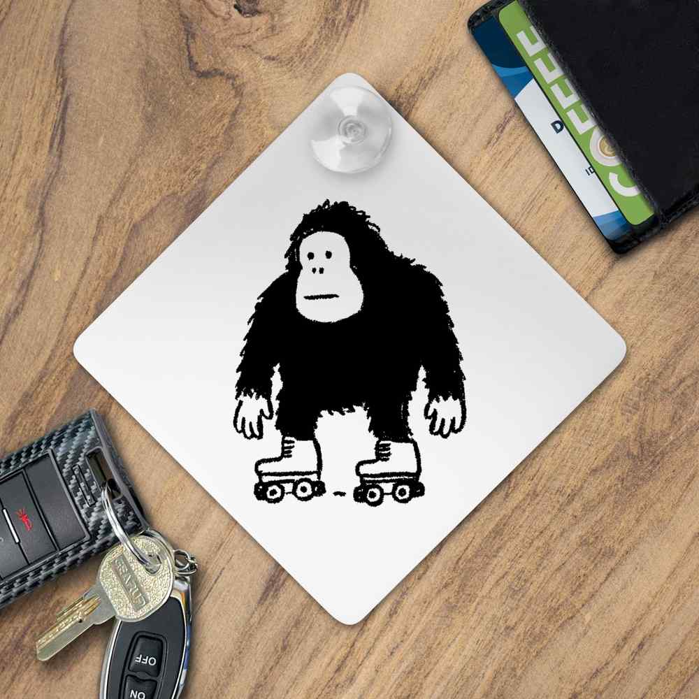 'Gorilla Wearing Roller Skates' Suction Cup Car Window Sign (CG00031721)