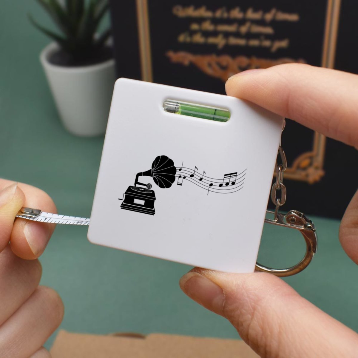 This multifunctional tool offers both a tape measure and spirit level in one handy little accessory. The retractable, 1 metre tape measure has both imperial and metric units, while the flat edges around its plastic casing provide the ability to check both vertical and horizontal surfaces with a mini spirit level. The compact and lightweight design makes it easy to carry around; simply attach with the keychain provided and whip it out when needed. Each keyring tape measure tool is printed on one side with a unique design.