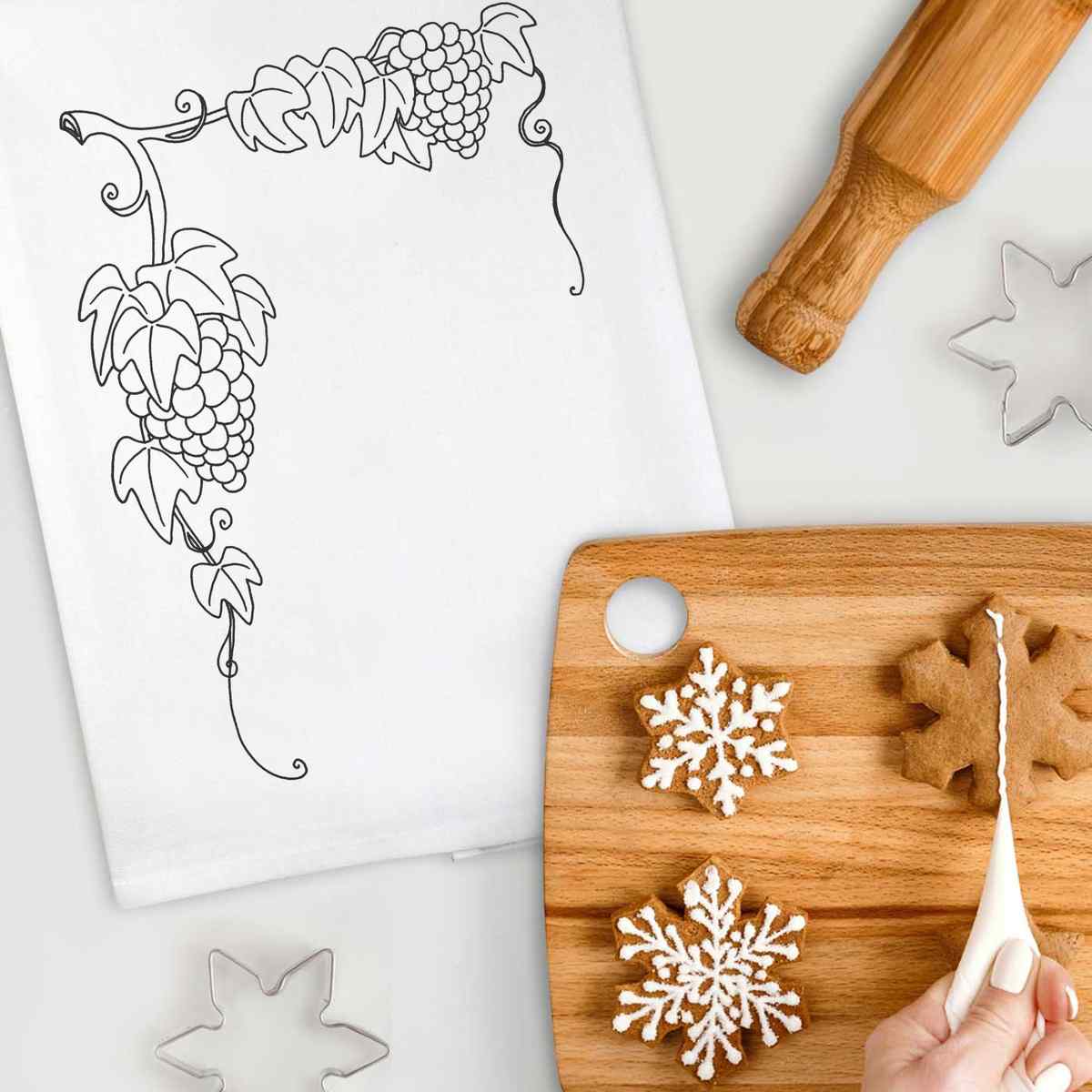 - White cotton tea towel with hanging loop