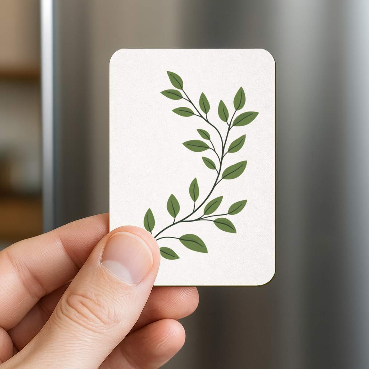 'Greek Green Leaf Branch' Rectangular Fridge Magnet - Decorative Refrigerator & Whiteboard Magnet for Home, Kitchen or Office - 70mm x 49mm (FM00057091)