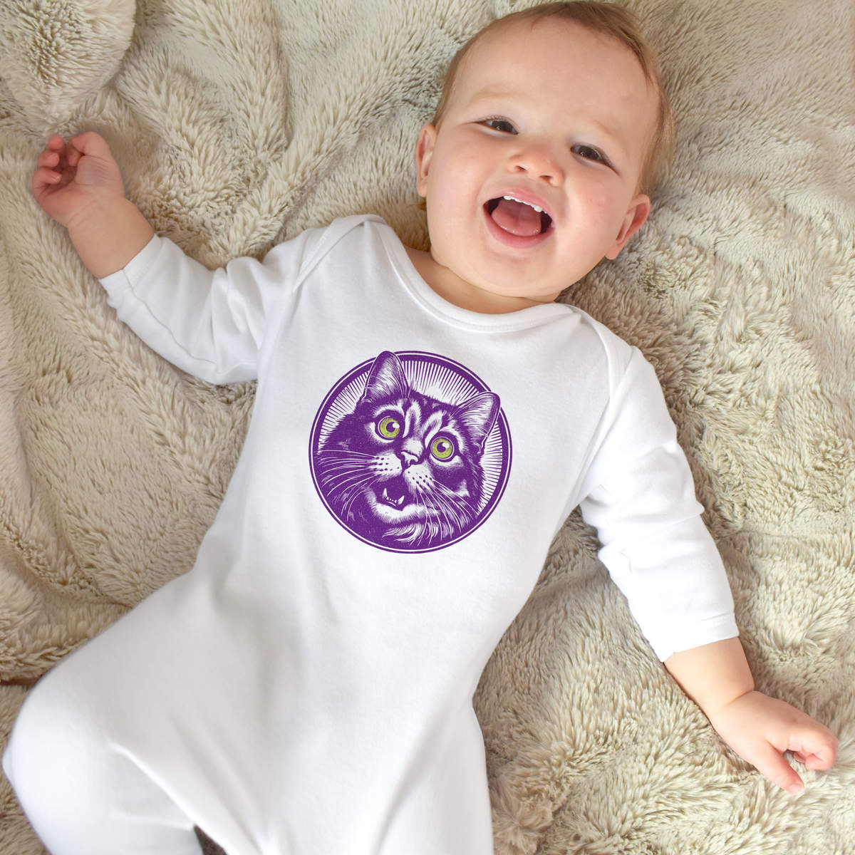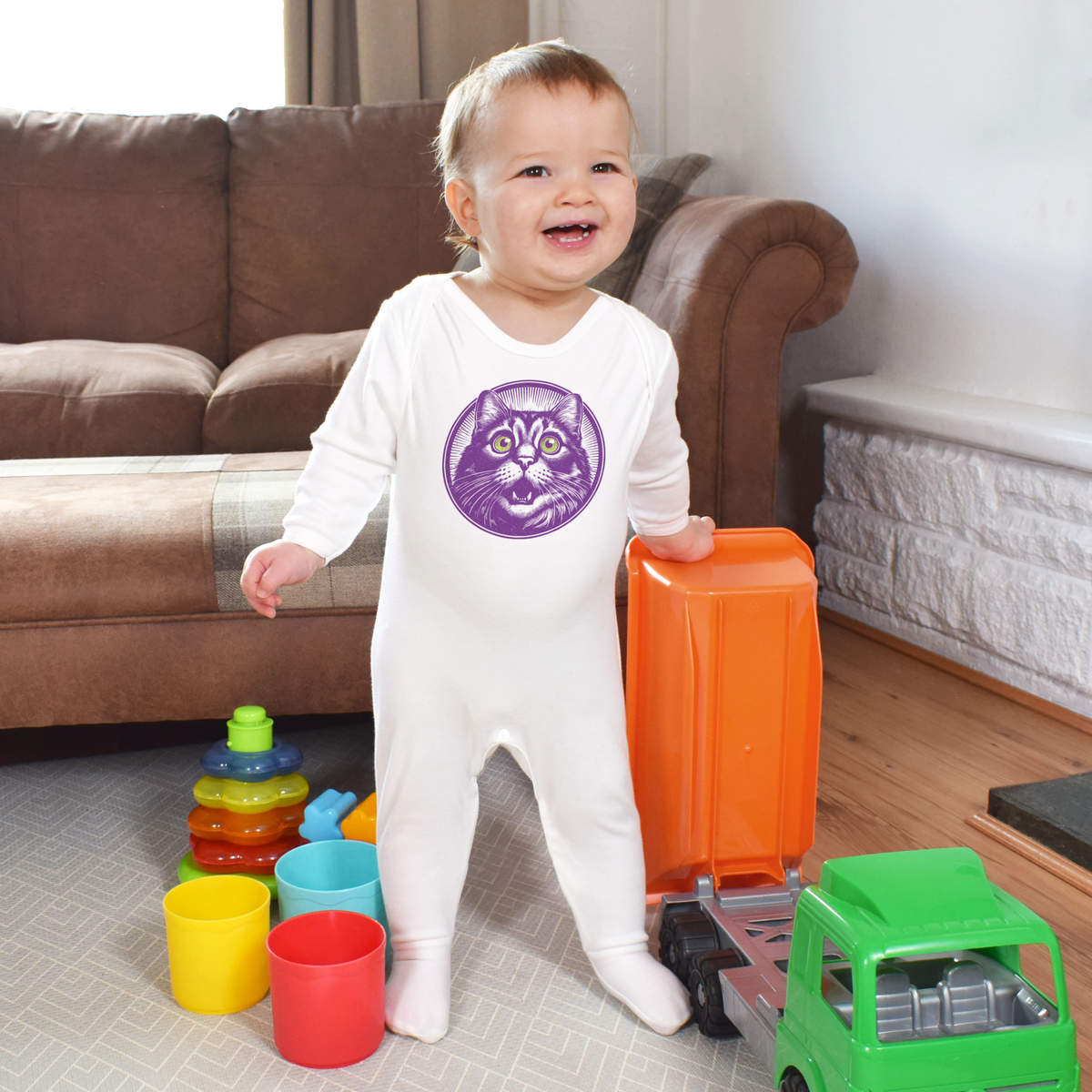 Little ones can sleep peacefully in this super soft romper sleepsuit. Our unisex jumpsuits are made from 100% cotton and are printed on the front with a unique design. Practical functions include popper fastenings for ease of changing and built-in feet.