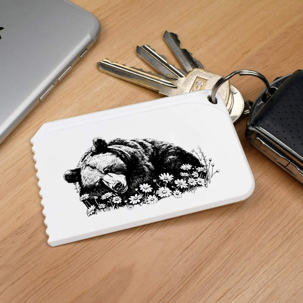 'Grizzly Bear Sleeping with Flowers' Plastic Ice Scraper (IC00046167)