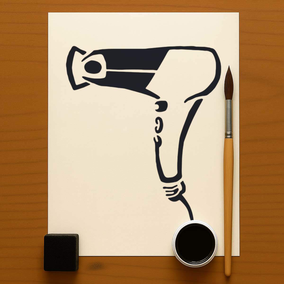 'Hair Dryer' Reusable Stencil – Durable Decorative Template for Painting and Spraying on Walls, Tiles, Wood, Fabric & Craft Projects - M (A5) (WS00013433)