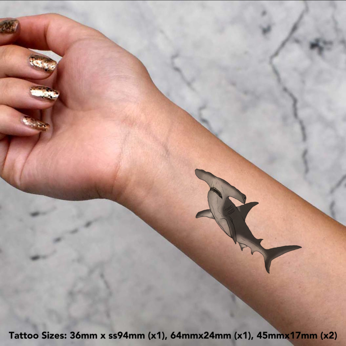 'Hammerhead Shark' Temporary Tattoos - Water Resistant, Skin-Safe, Non-Toxic Transfers (TO029878)
