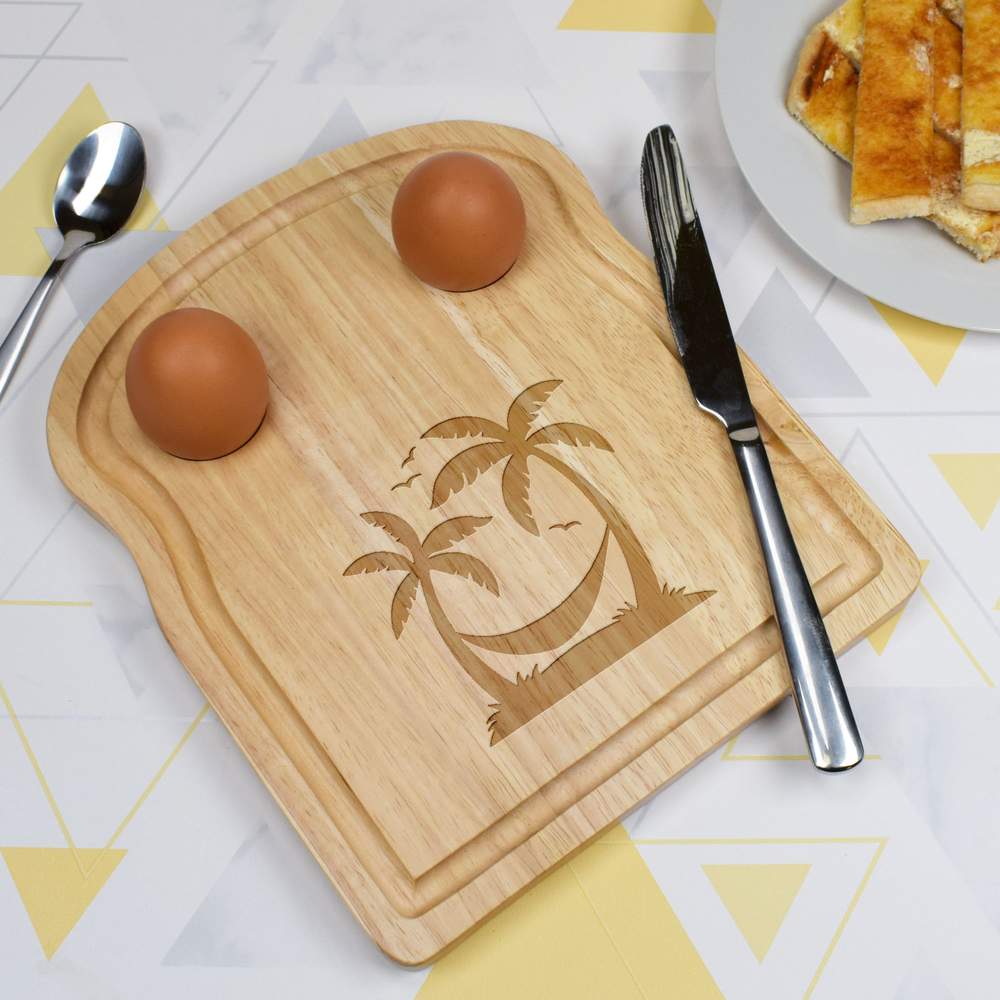 The perfect gift for anyone who loves eggs, especially dippy ones! Made from durable Hevea wood, the front of each board is engraved with a unique design. Each wooden board is shaped like a slice of bread and has two sockets for eggs to sit comfortably in. Just add eggs cooked to perfection and don’t forget the soldiers...