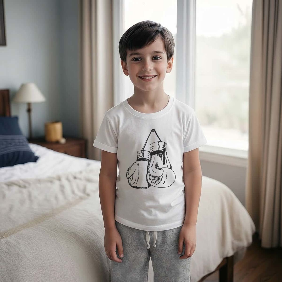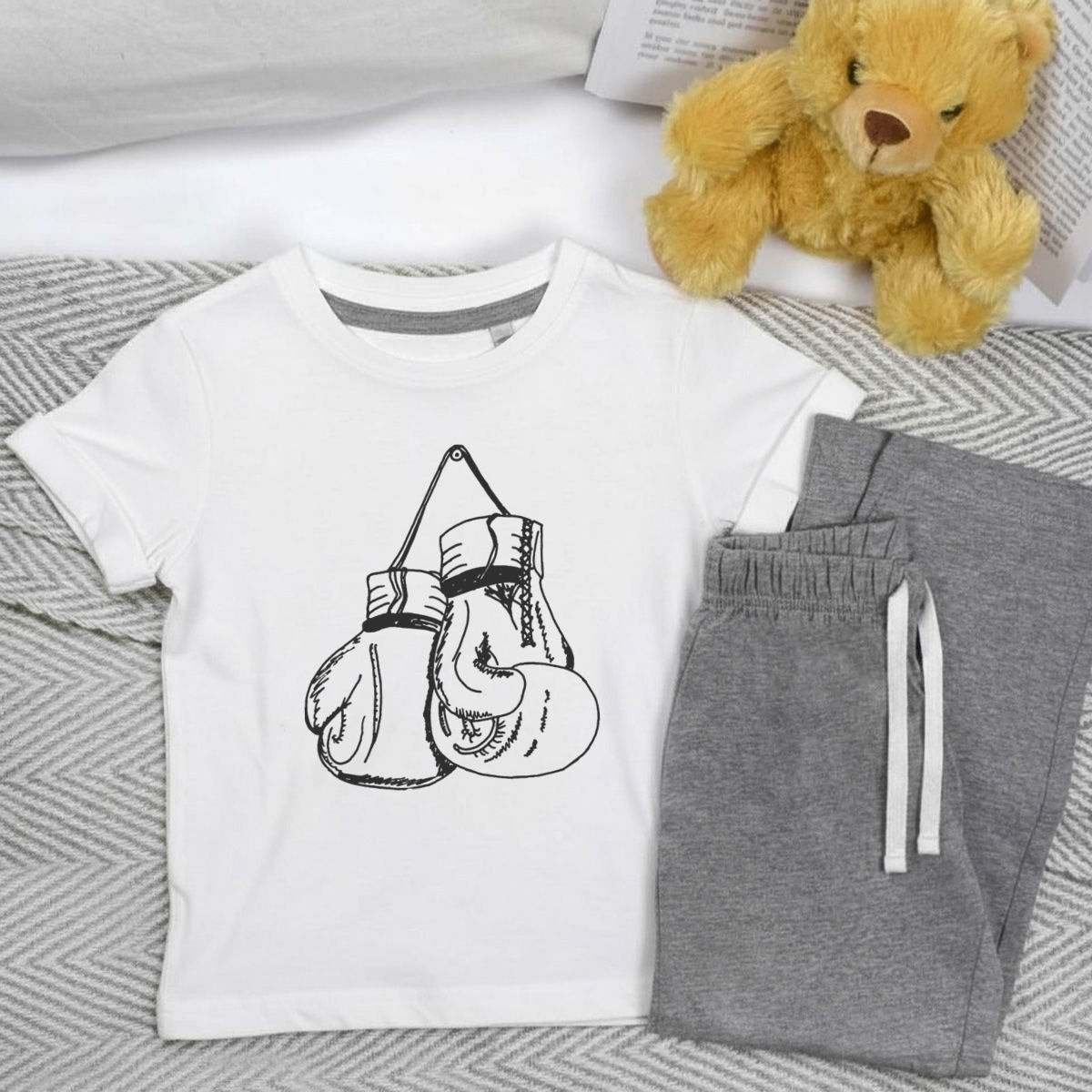 'Hanging Boxing Gloves' Kids Cotton Pyjama Set – Comfortable Children's Nightwear, Sleepwear and Loungewear - Unisex for Boys and Girls - Grey, 7-8 Years (KP00066147)