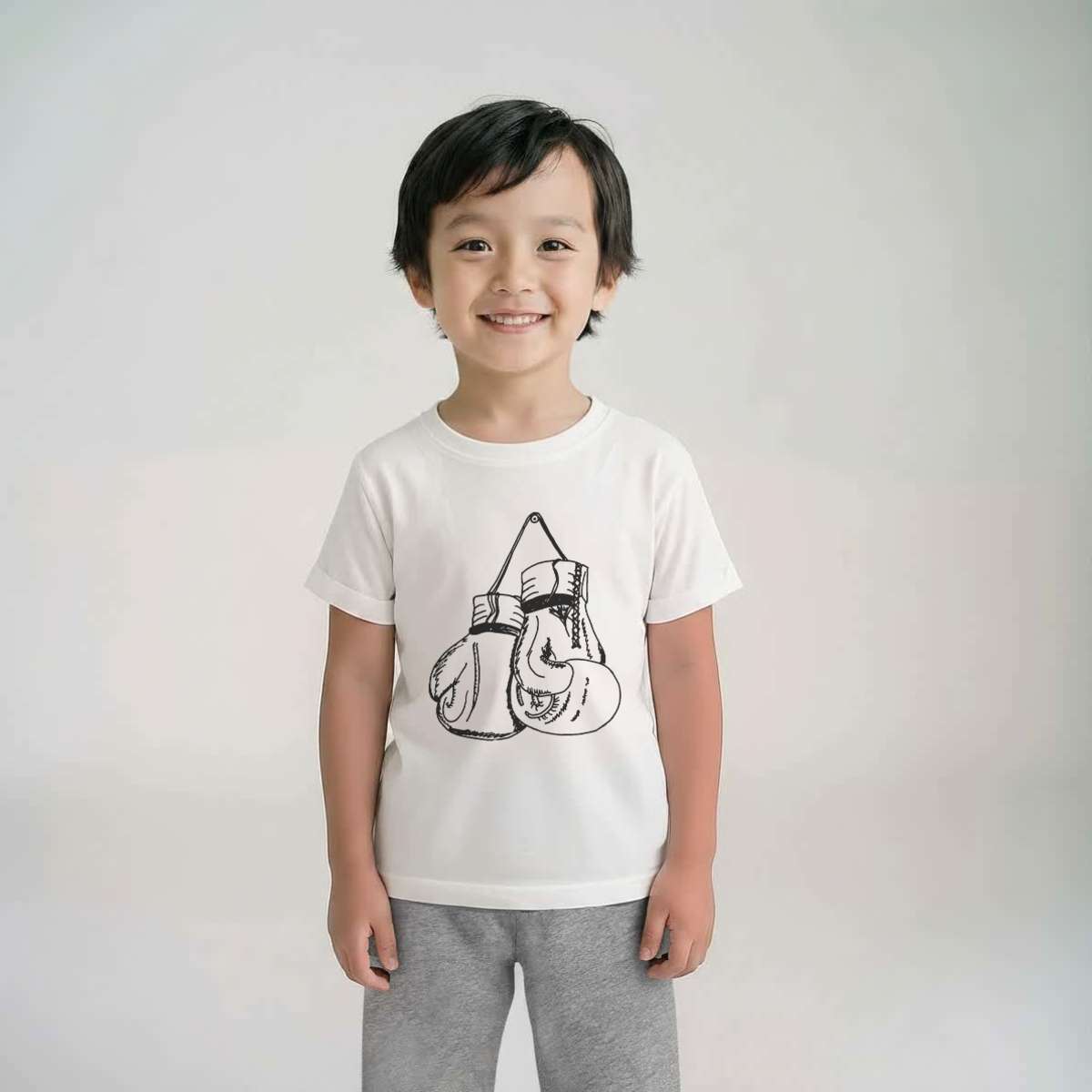 'Hanging Boxing Gloves' Kids Cotton Pyjama Set – Comfortable Children's Nightwear, Sleepwear and Loungewear - Unisex for Boys and Girls – Grey (KP030140)