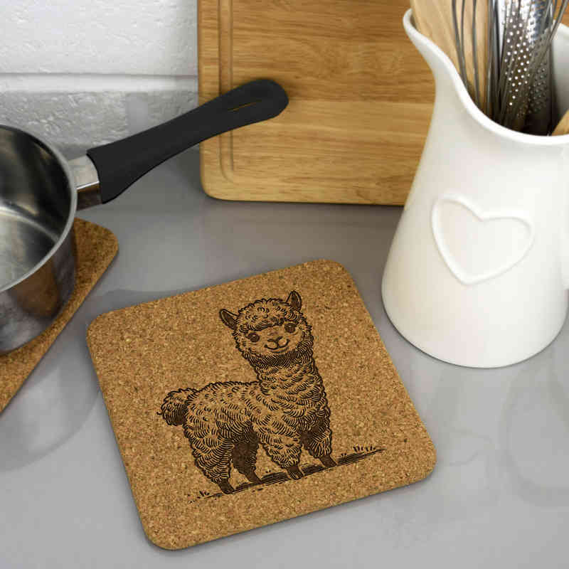 This wonderful square cork trivet / mat is a great addition to any kitchen. The cork is naturally non-slip and resistant to heat making it the perfect material to protect your kitchen worktops. Engraved on one side with a unique design, this product would make a fantastic gift and homeware essential.