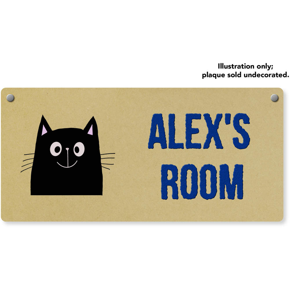 The plaques are made from a slim 3mm MDF - making them durable, but also very light. They have two holes, one in each of the top corners, and can either be screwed in place or have rope threaded through them to hang them. Neither screws nor rope are included with the plaque.
