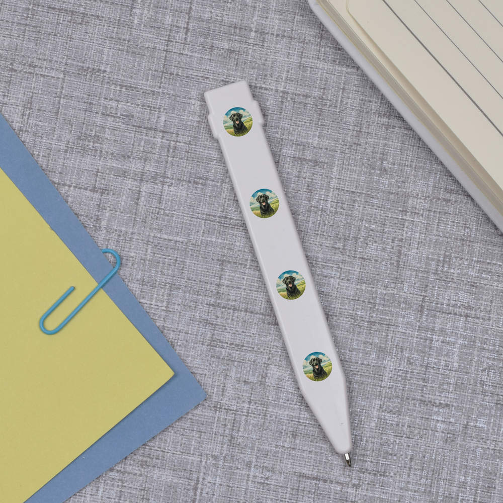 - A flat ballpoint pen with magnetic strip on the back