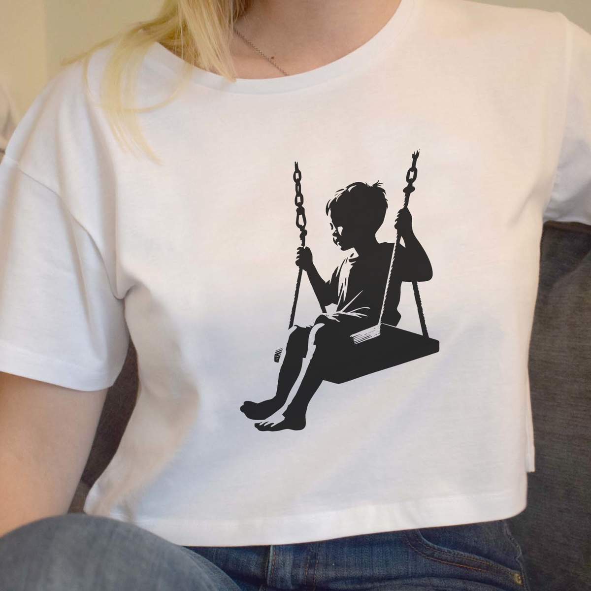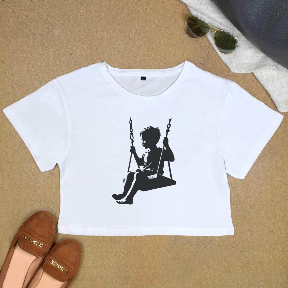 'Women's, Crop Top, White, Crew neck, Cropped'