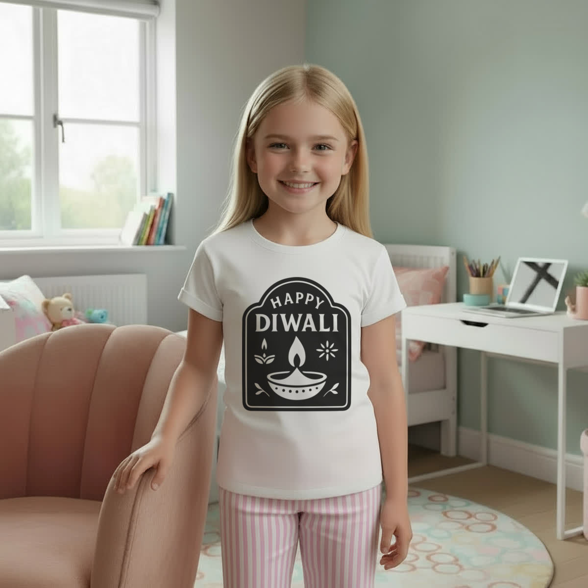 'This festive design captures the spirit of Diwali, ideal for celebrating the holiday season with joy and light'