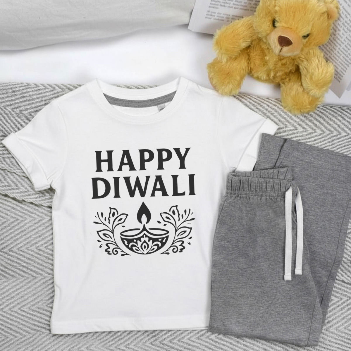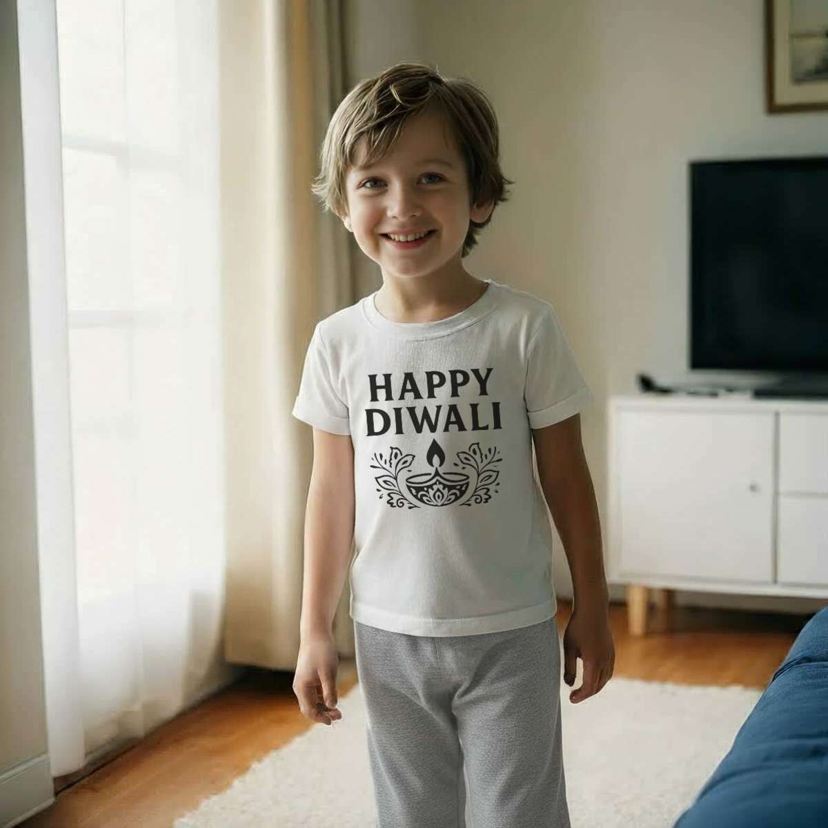 'Celebrate the joyous festival of lights with this festive design, perfect for spreading happiness during the holiday season'