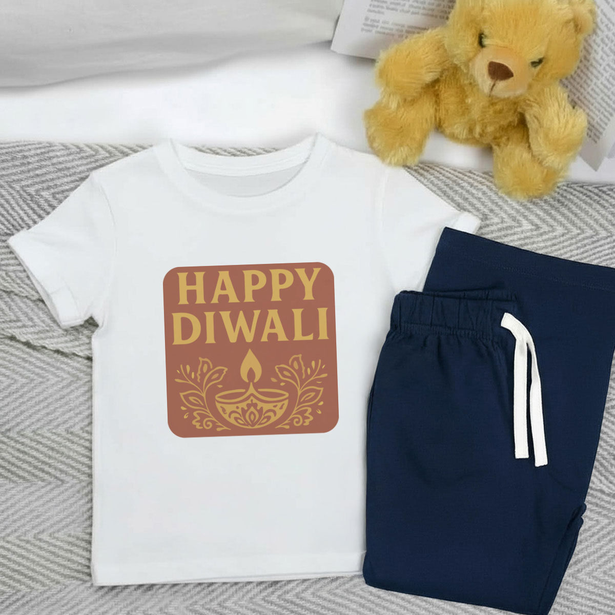 'Happy Diwali Festival Design' Kids Cotton Pyjama Set – Comfortable Children's Nightwear, Sleepwear and Loungewear - Unisex for Boys and Girls - Navy, 5-6 Years (KP00399335)