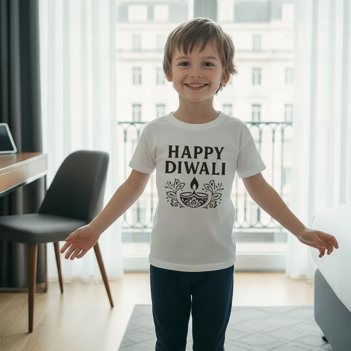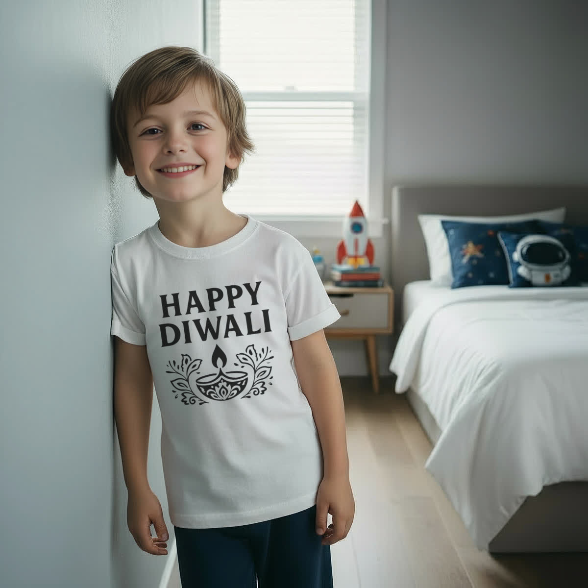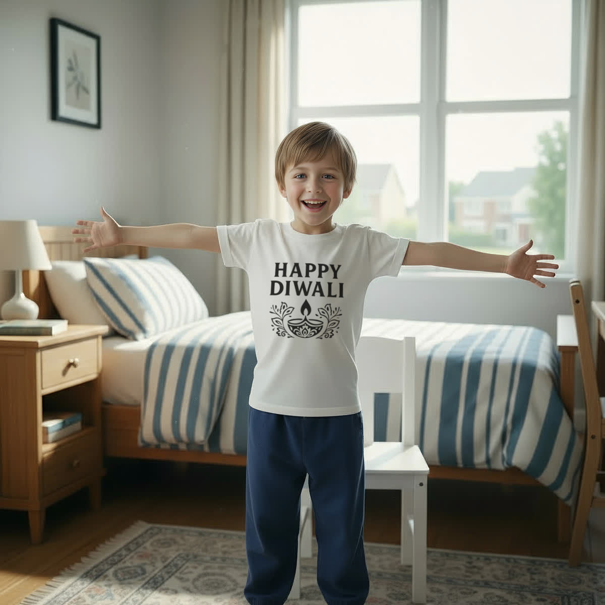 'Celebrate the joyous festival of lights with this festive design, perfect for spreading happiness during the holiday season'