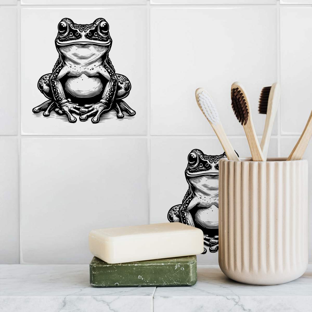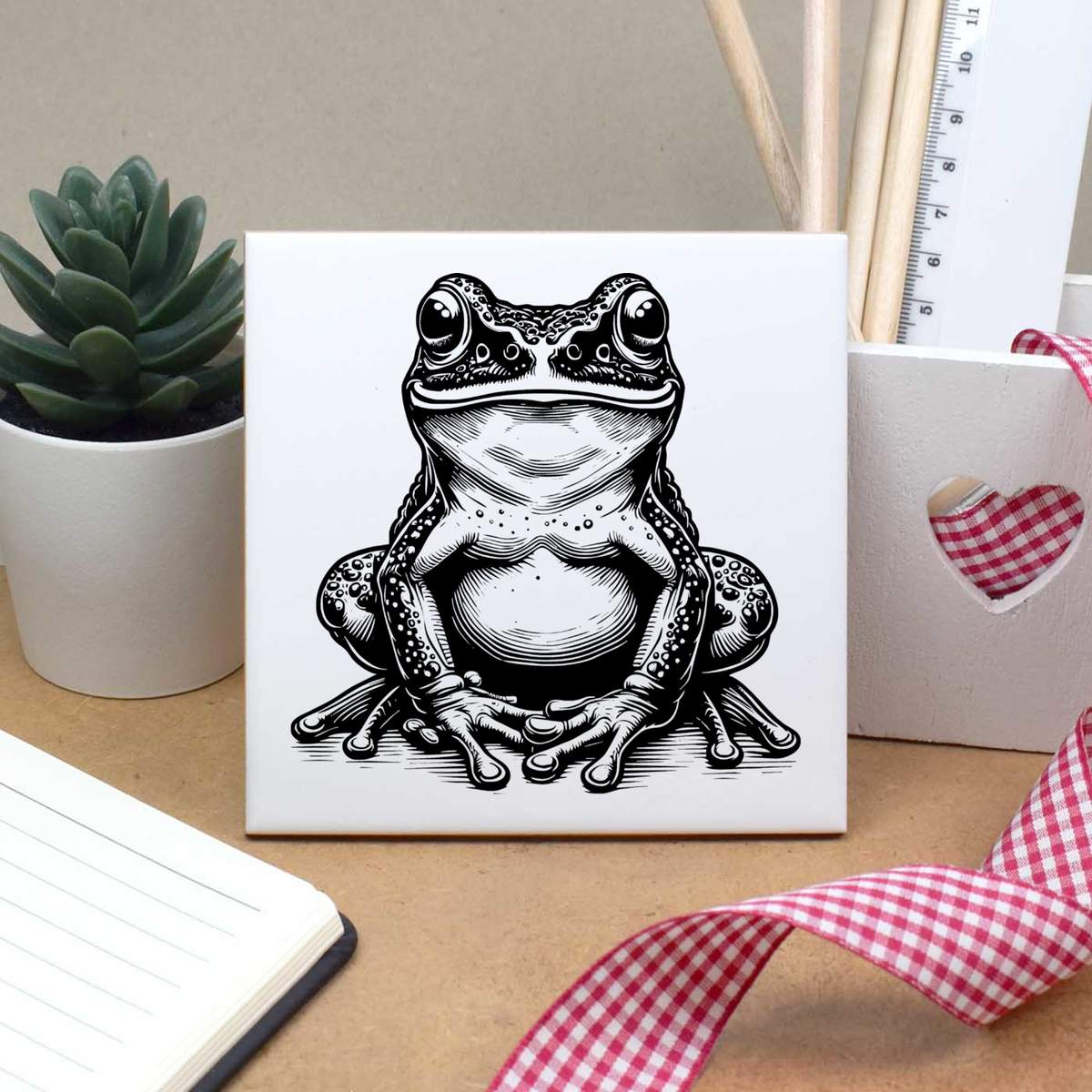 'Happy Frog Sitting' 108mm Square Ceramic Tile (TD00037466)