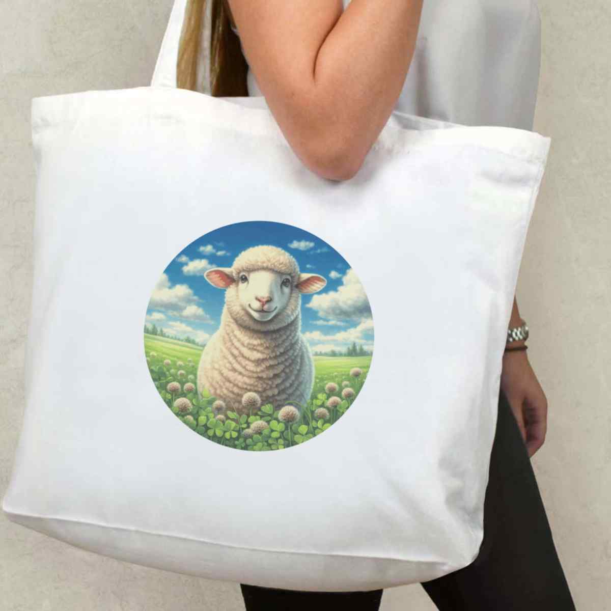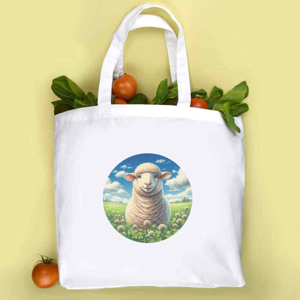'Happy Lamb In Clover' Tote Shopping Bag For Life (BG00085243)