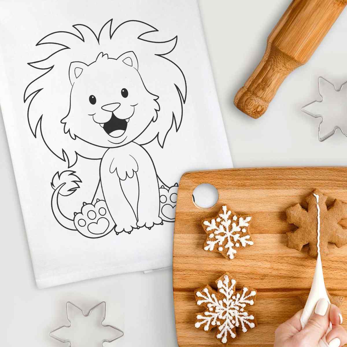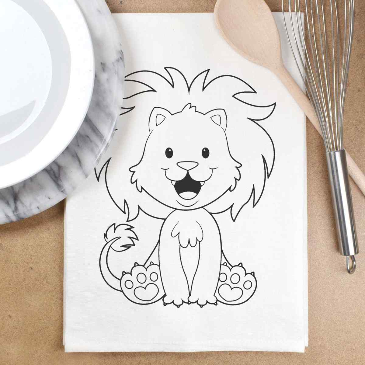'Happy Lion' Cotton Tea Towel / Dish Cloth (TW005556)