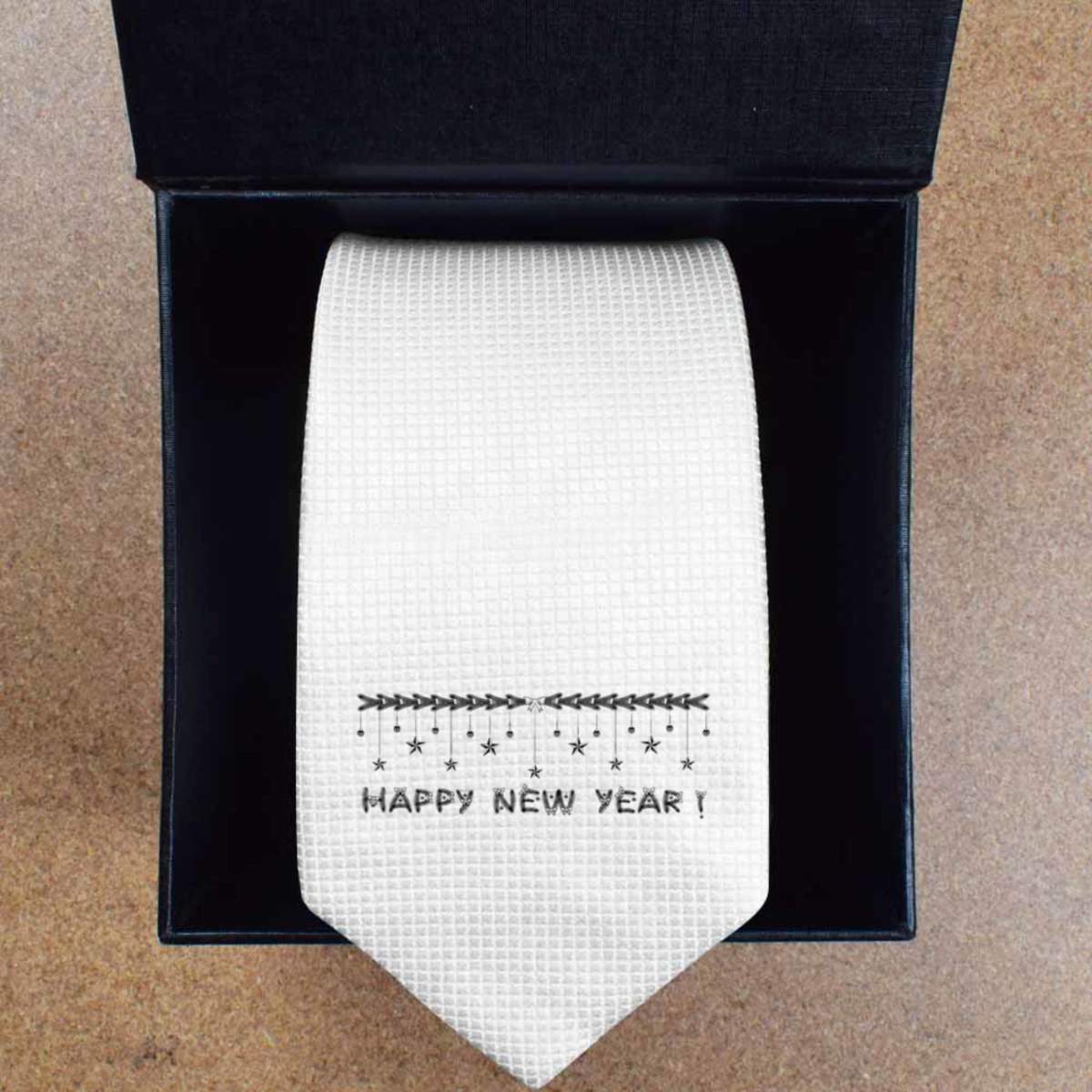 'Happy New Year Banner' White Tie / Necktie with Gift Box (AT00000710)