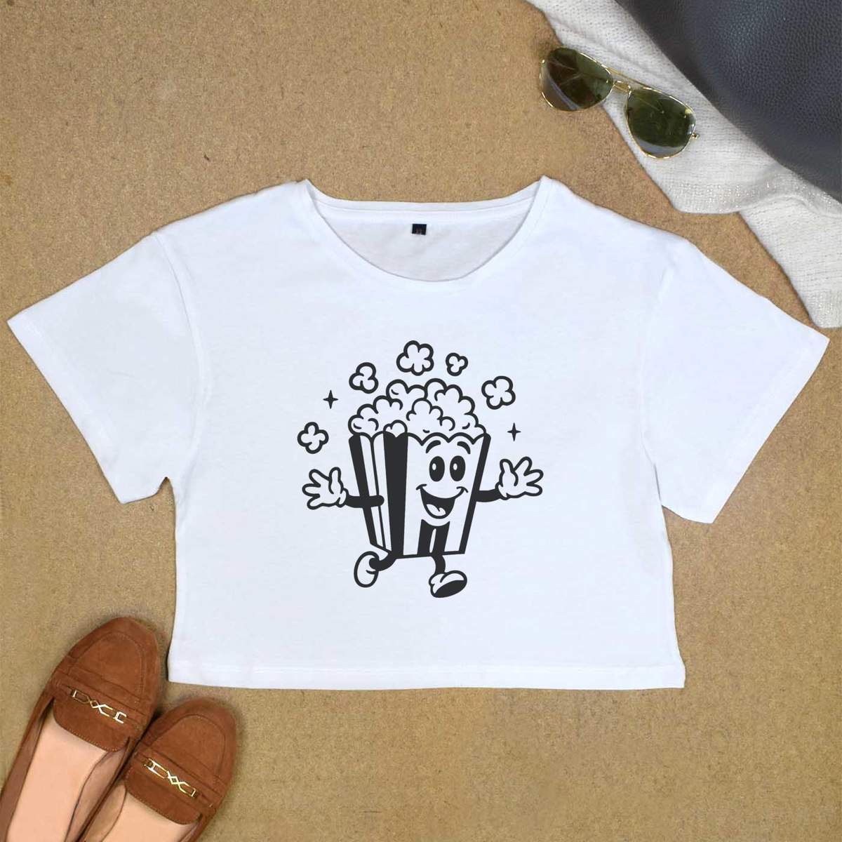 'Women's, Crop Top, White, Crew neck, Cropped'