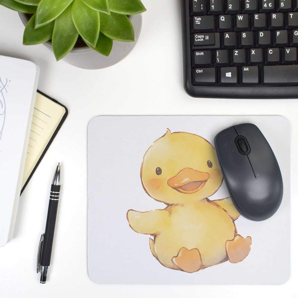'Happy Yellow Duck Sitting' Mouse Mat / Desk Pad (MO00036451)