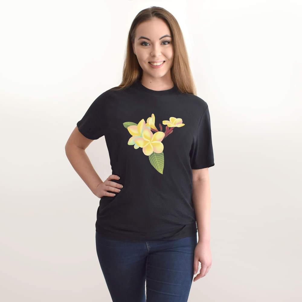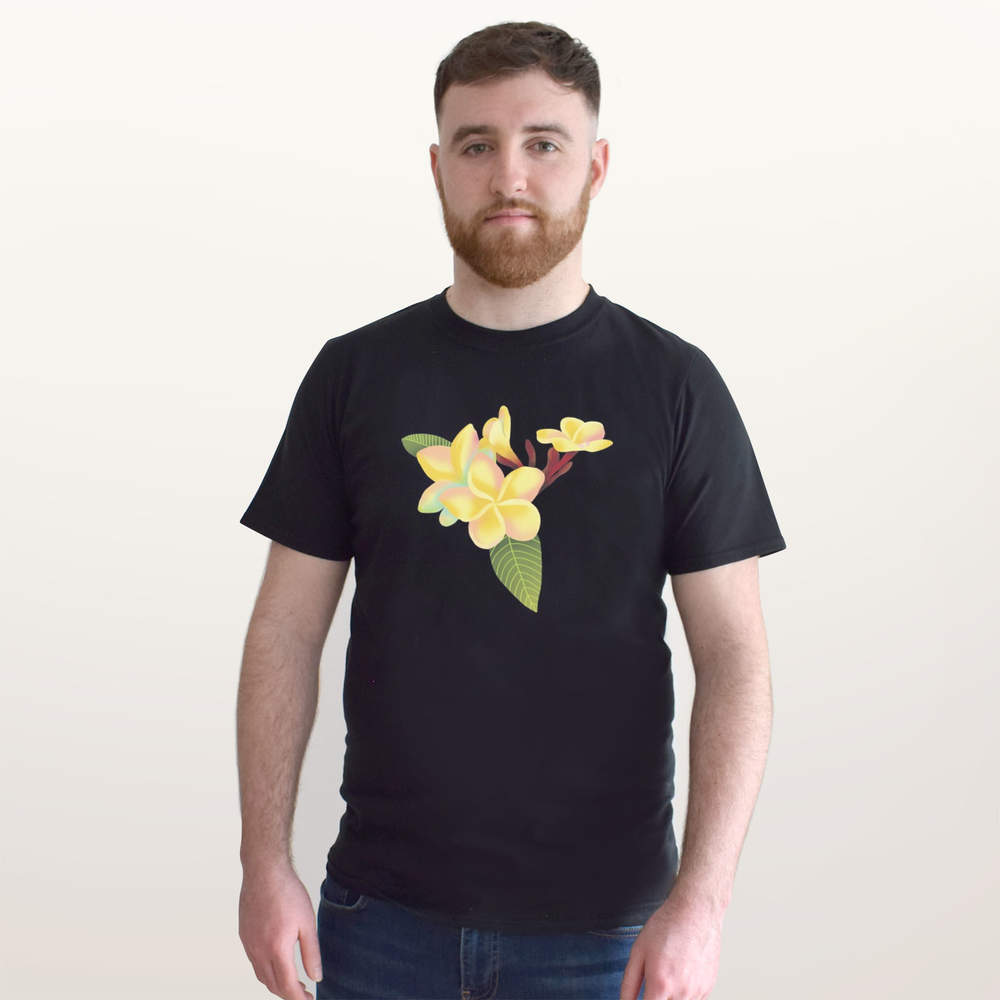 'Hawaiian Plumeria' Unisex T-Shirt - 100 % Cotton, Black, L (TA00338466)
