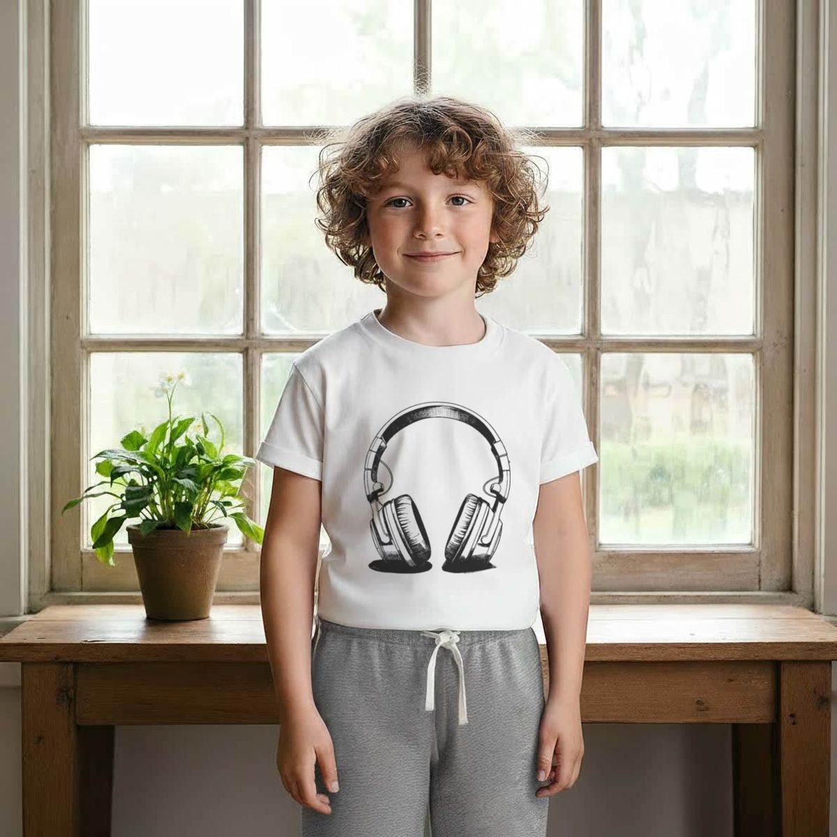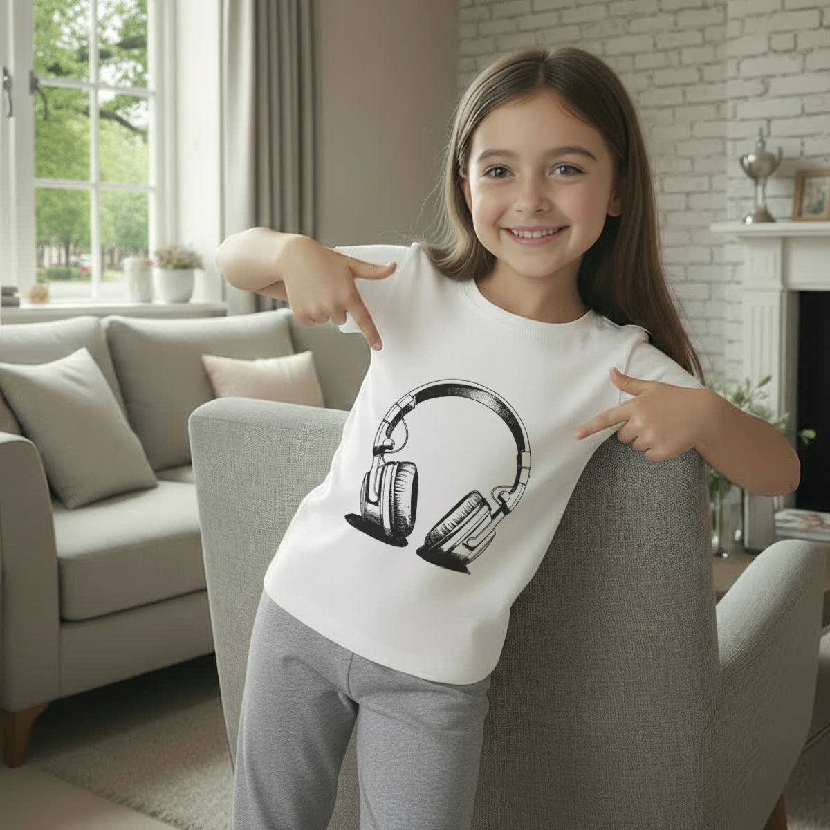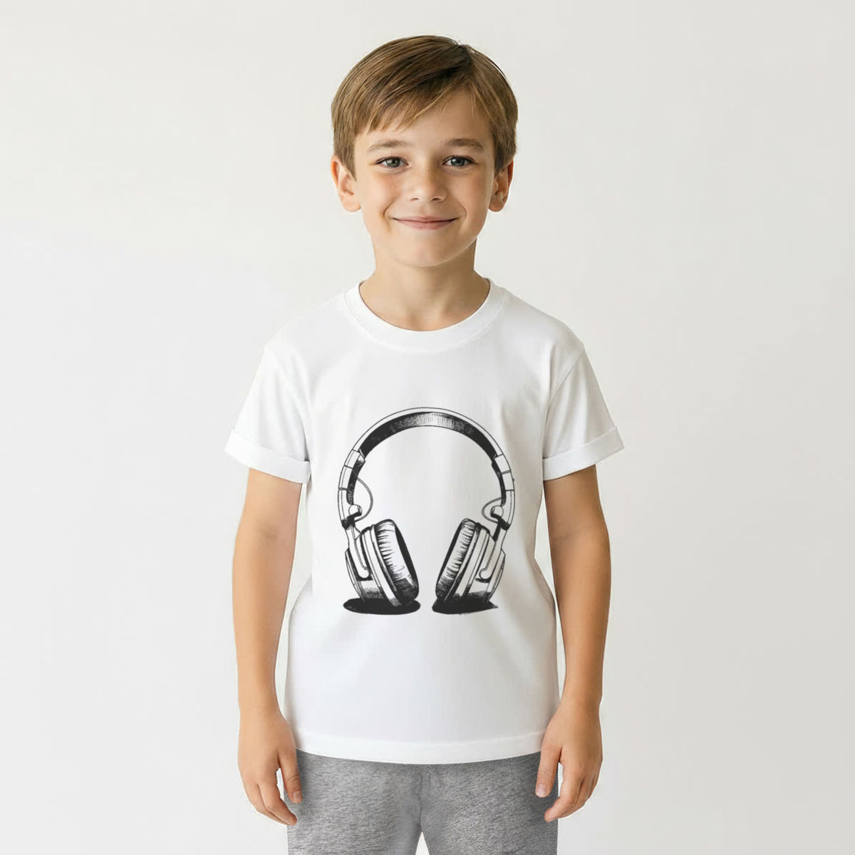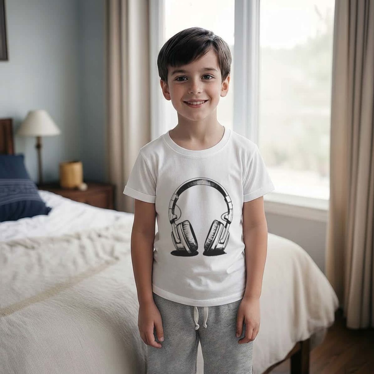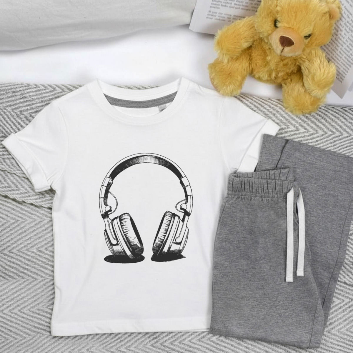 'Headphones' Kids Cotton Pyjama Set – Comfortable Children's Nightwear, Sleepwear and Loungewear - Unisex for Boys and Girls - Grey, 7-8 Years (KP00130988)
