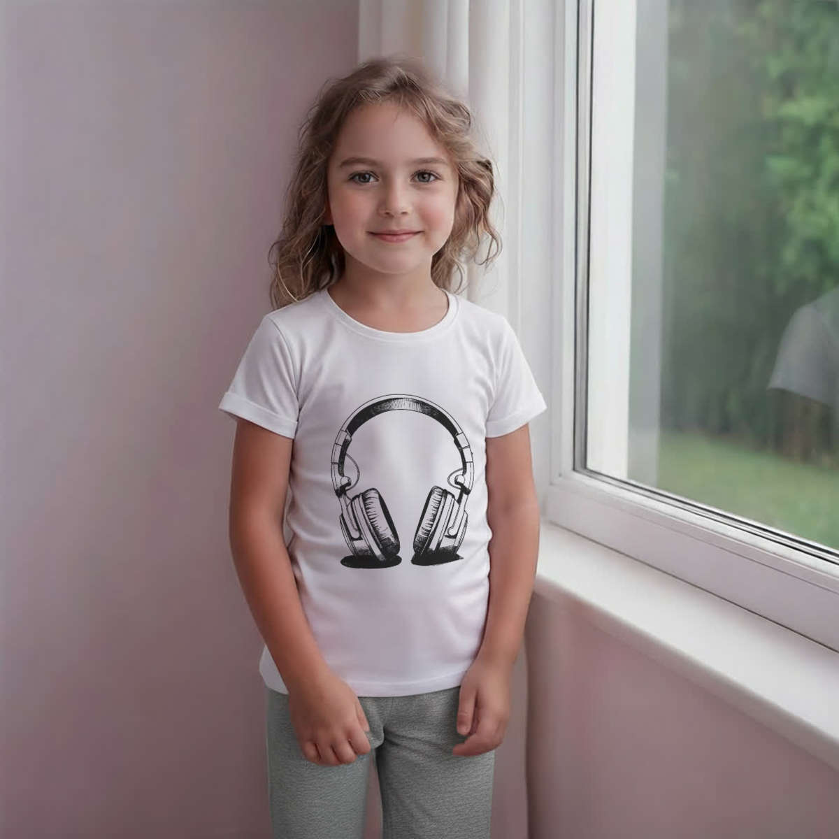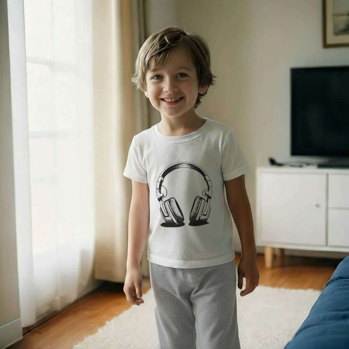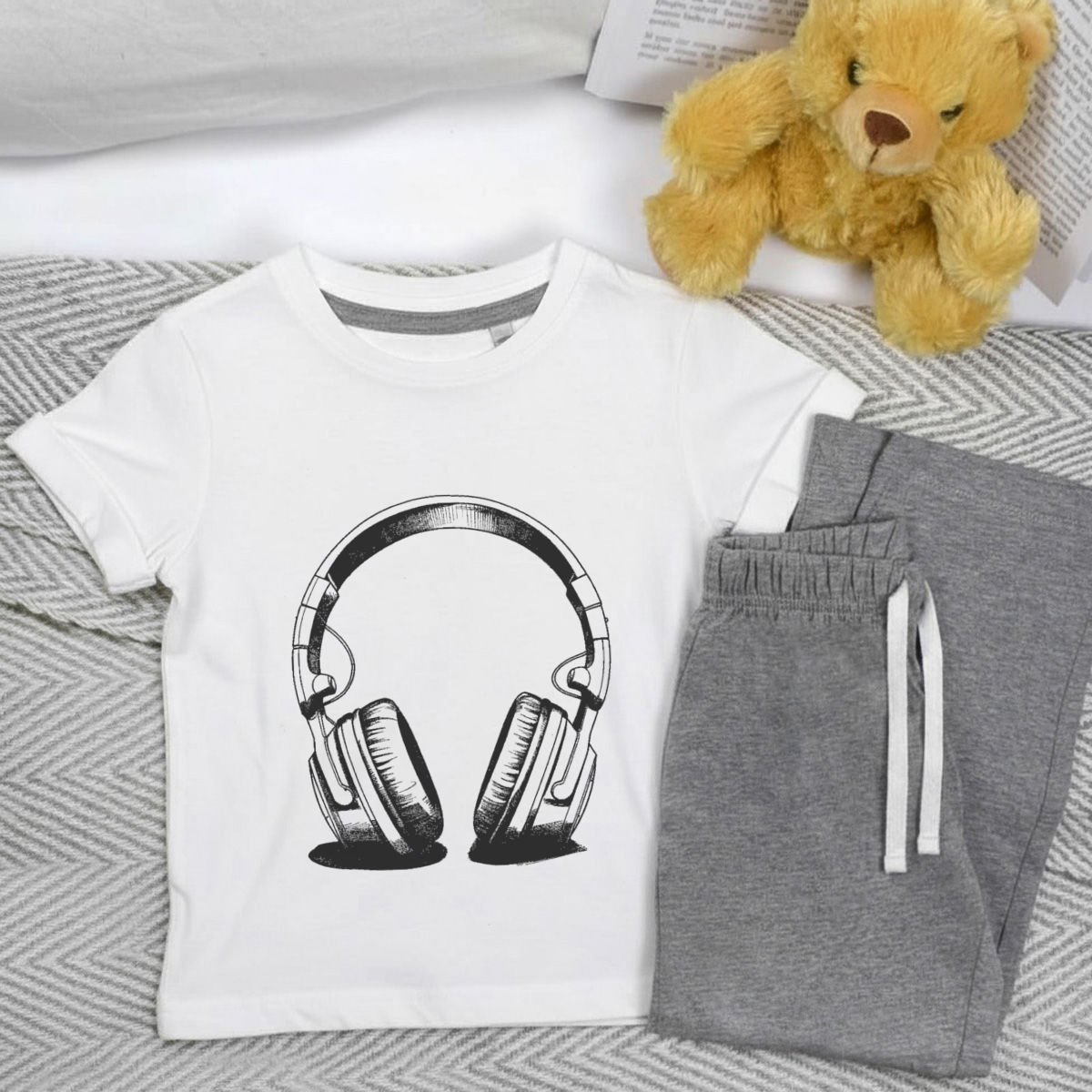 'Headphones' Kids Cotton Pyjama Set – Comfortable Children's Nightwear, Sleepwear and Loungewear - Unisex for Boys and Girls – Grey (KP041132)