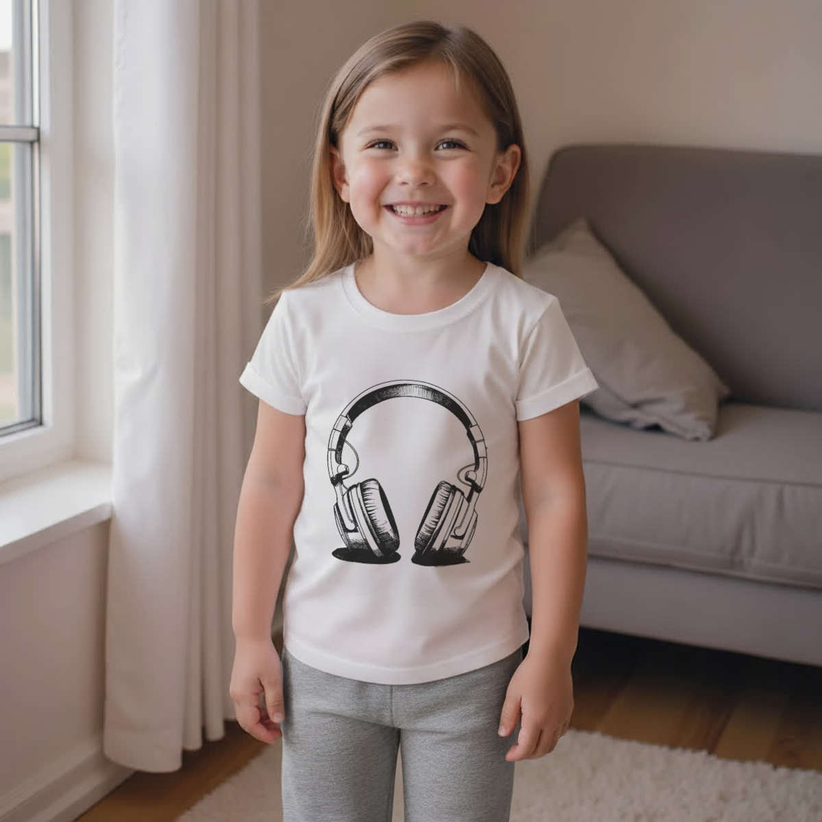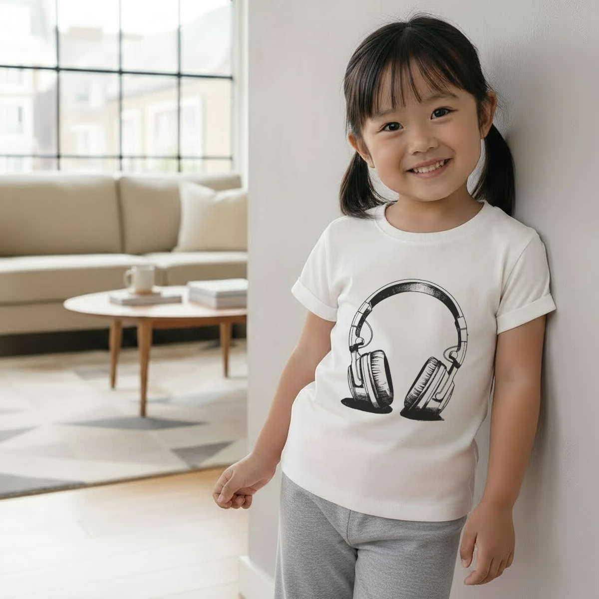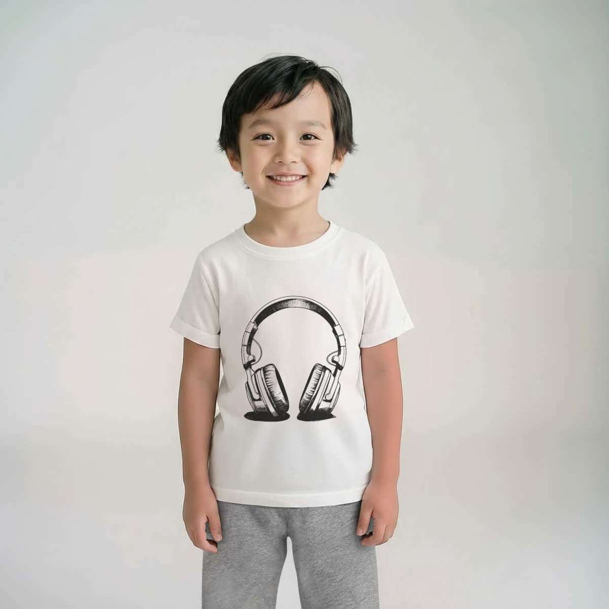 'Headphones' Kids Cotton Pyjama Set – Comfortable Children's Nightwear, Sleepwear and Loungewear - Unisex for Boys and Girls – Grey (KP041132)