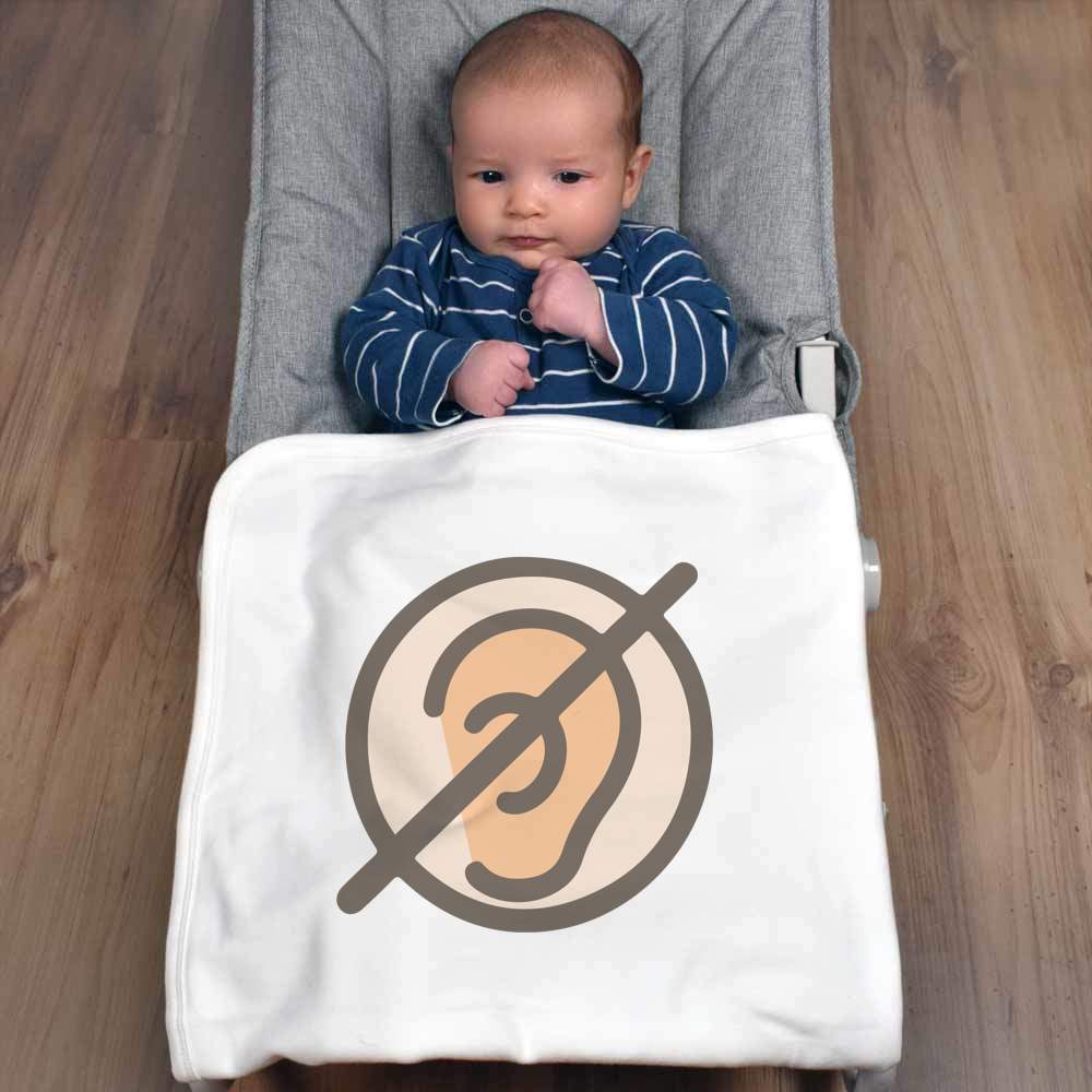 'This image displays a universally recognized symbol indicating hearing impairment, featuring an ear within a circle and a diagonal line crossing through.'