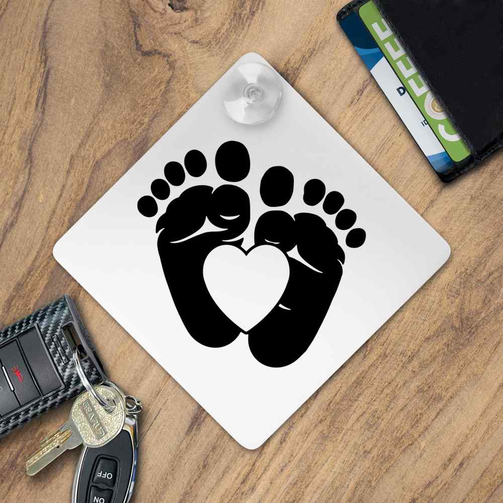 'A pair of baby feet with a heart.'