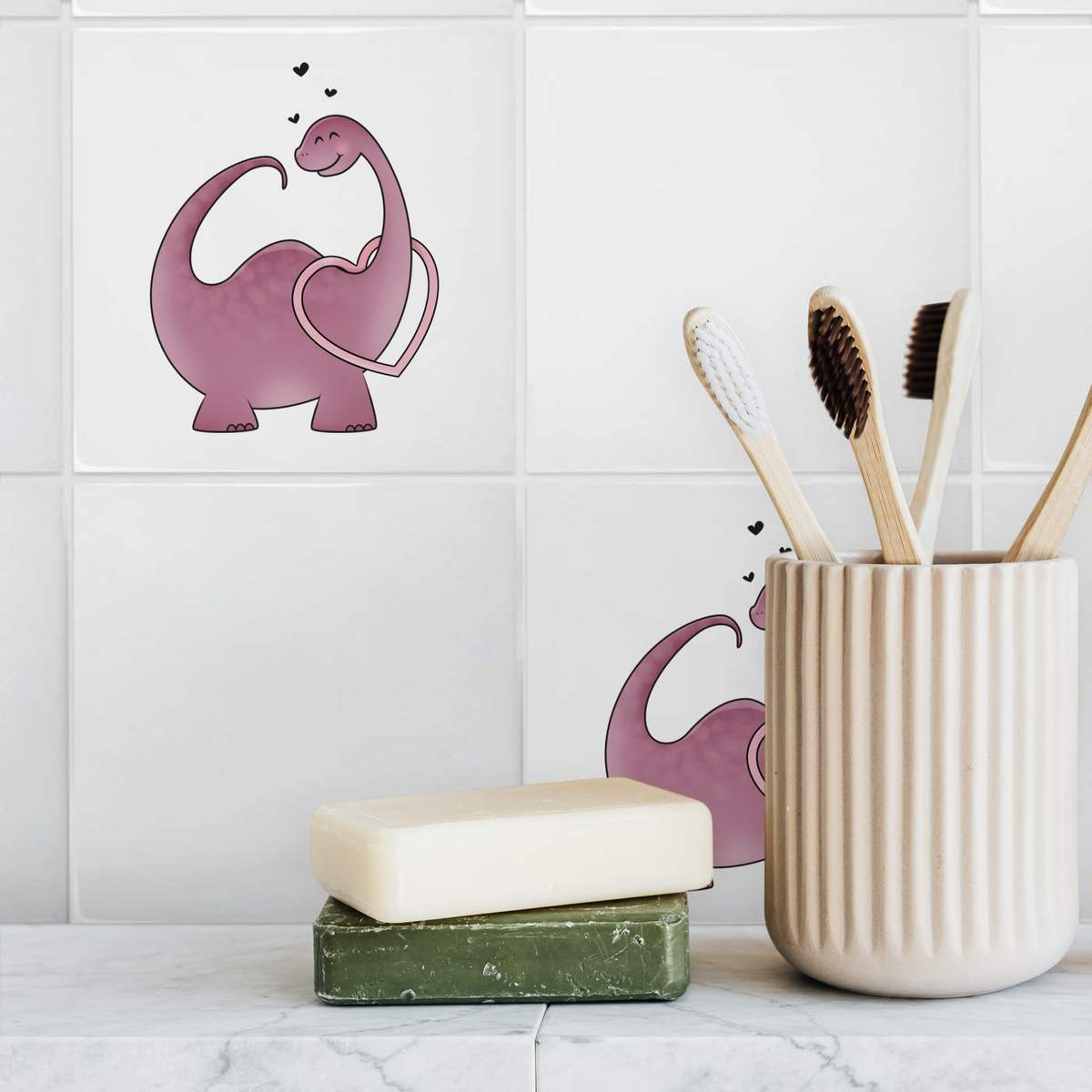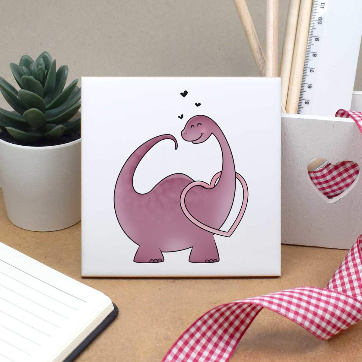 'Heart Dinosaur' 108mm Square Ceramic Tile (TD00011068)