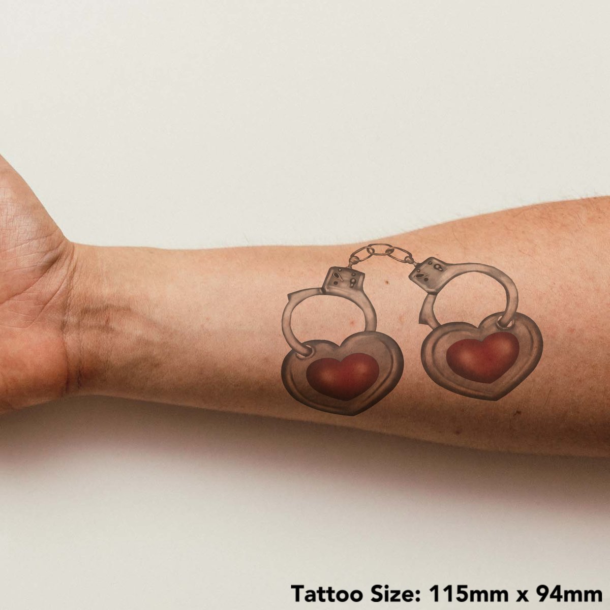 'Heart Handcuffs' Temporary Tattoo - Water Resistant, Skin-Safe, Non-Toxic Transfer (TO00036342)