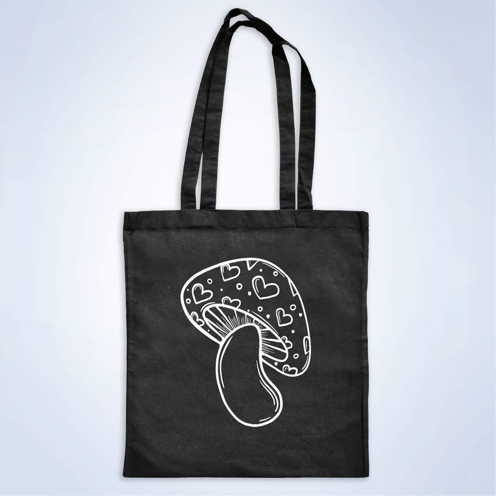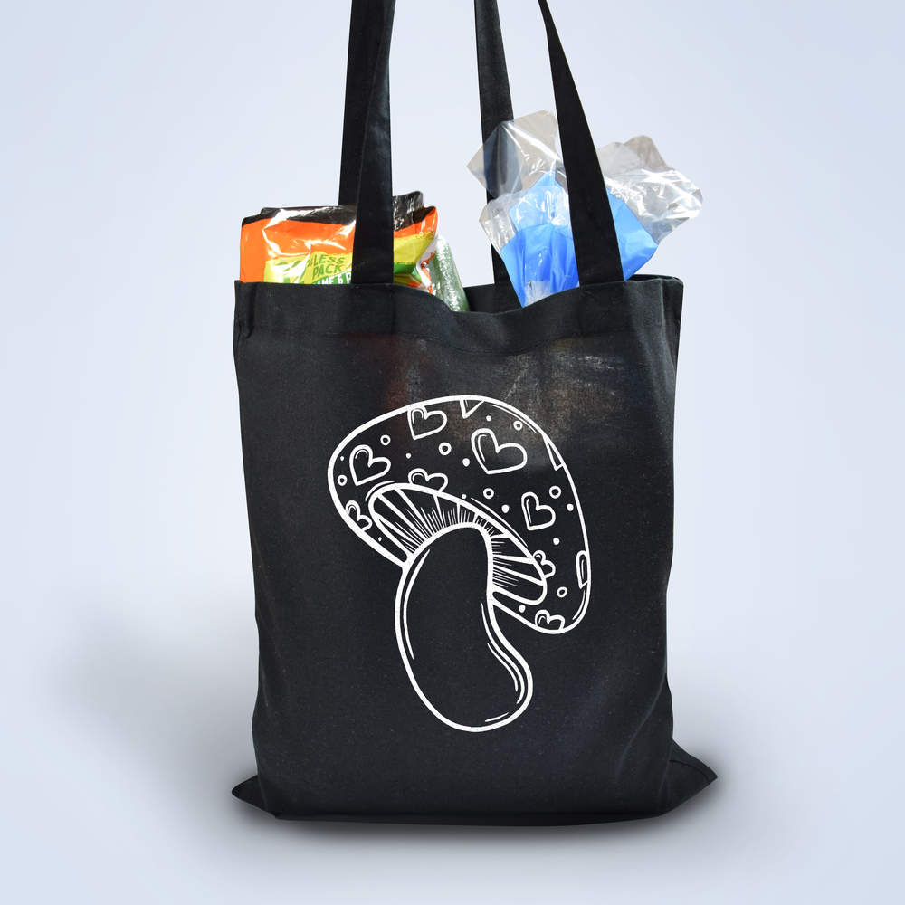 'Heart Mushroom' Classic Black Tote Shopper Bag (ZB00019459)