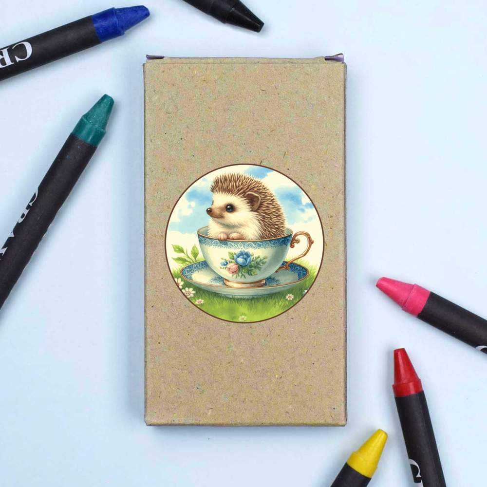 - A set of 6 vibrant colouring crayons with a handy storage box