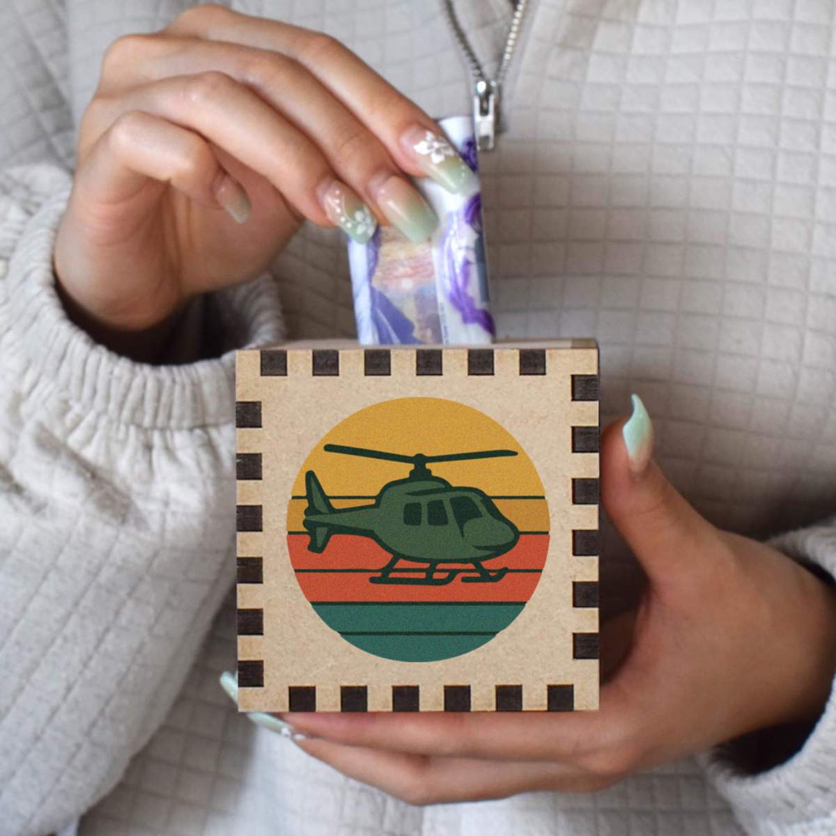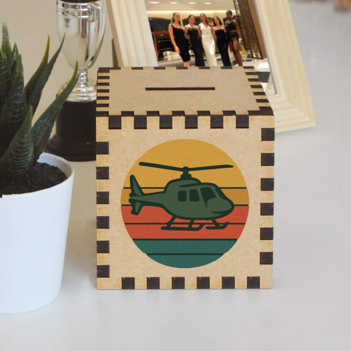 An 8.5cm wooden money box made out of the finest quality MDF and printed on all four sides with a unique design. The bottom is flat and the top has a slot for coins, the box itself is 85mm on each side, with a 35mm x 5mm coin slot, so please be sure it's suitable for you.